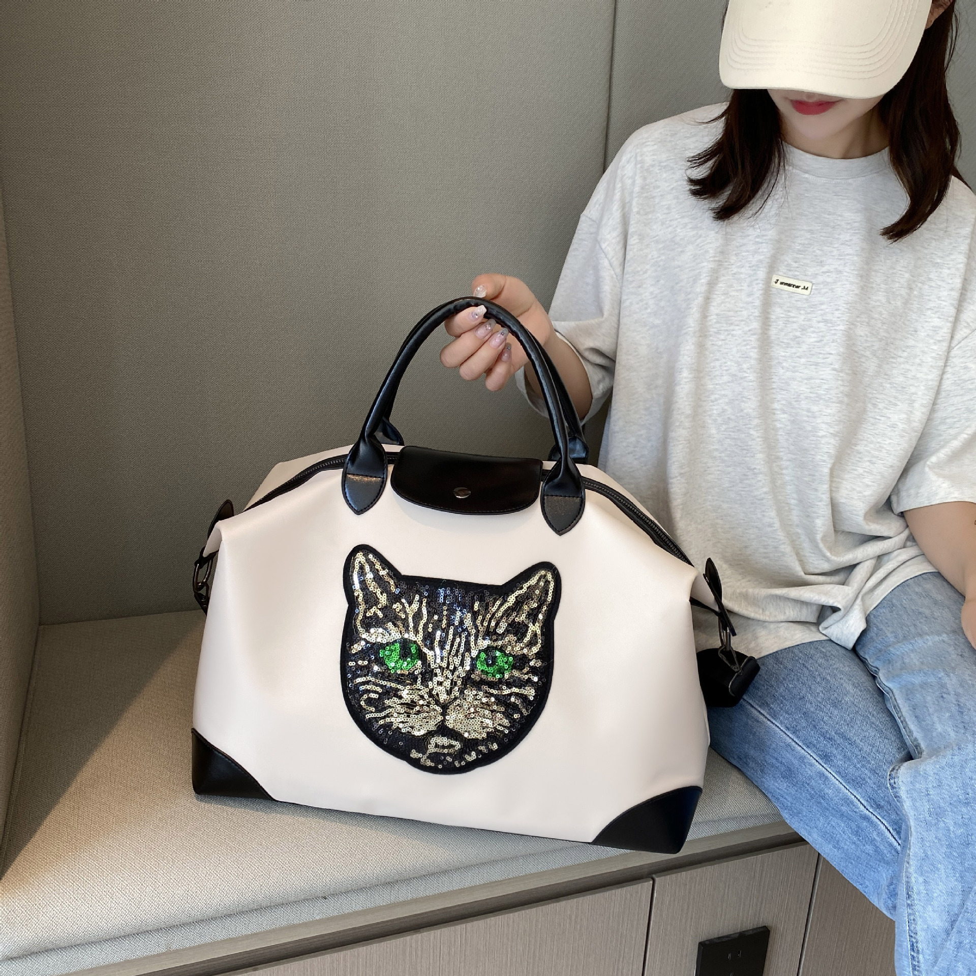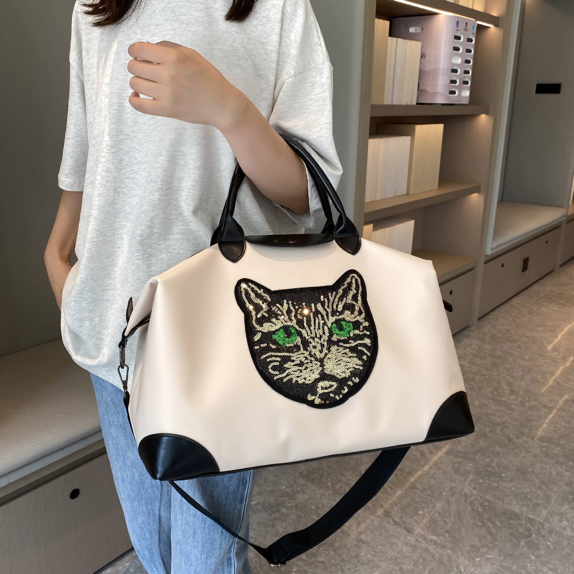 새로운 수 놓은 대용량 여행 가방 여성의 귀여운 어깨 가방 핸드백 점심 가방 남성 체육관 가방