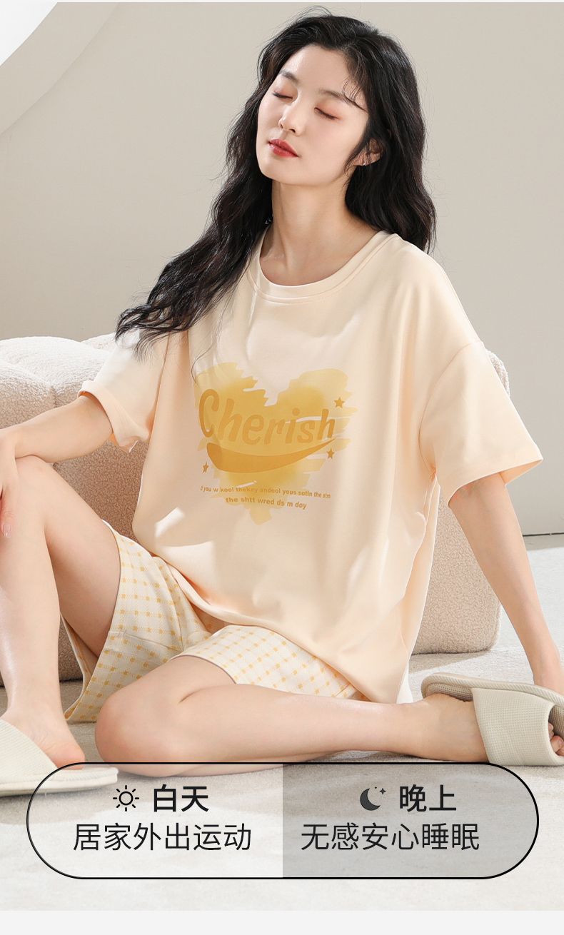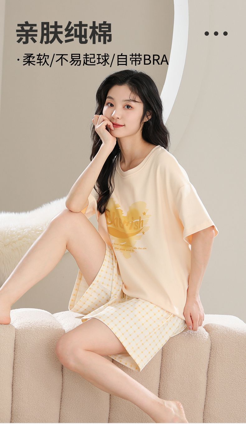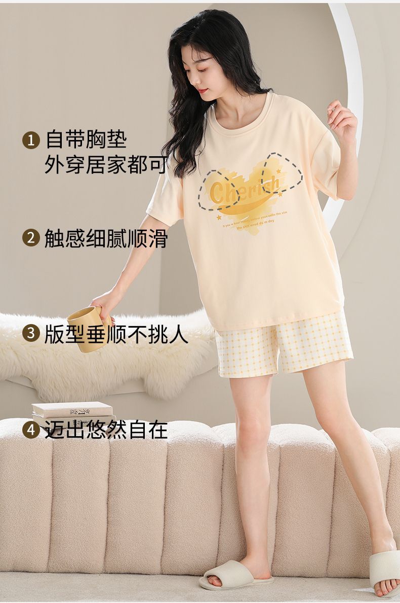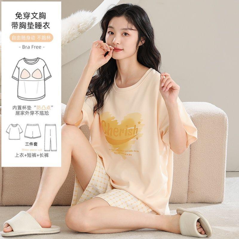 3 피스 새 스타일 파자마 가슴 패드 여성용 여름 얇은 캐주얼 더블 짧은 바지 겉옷 홈 옷스토어 가기