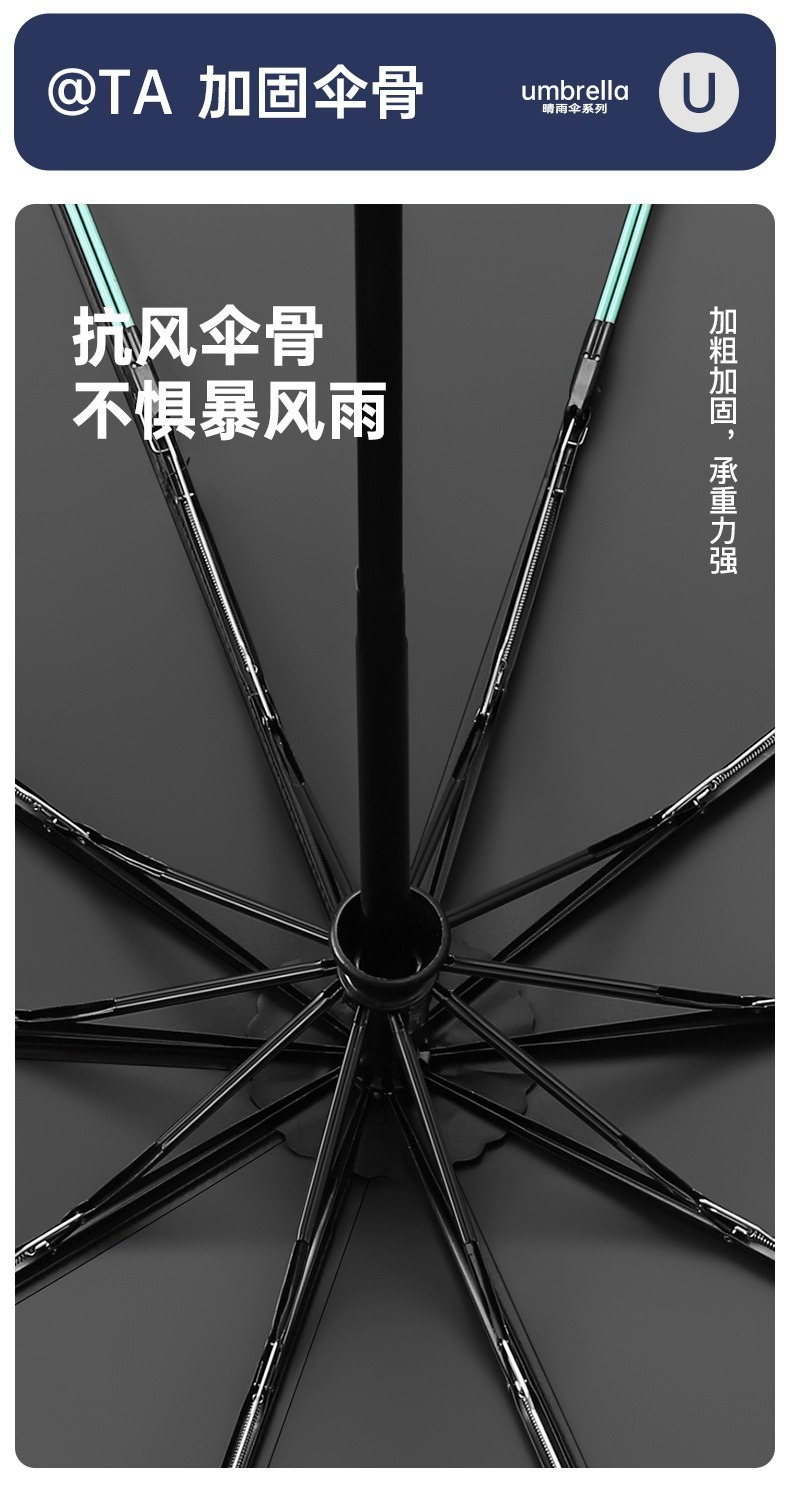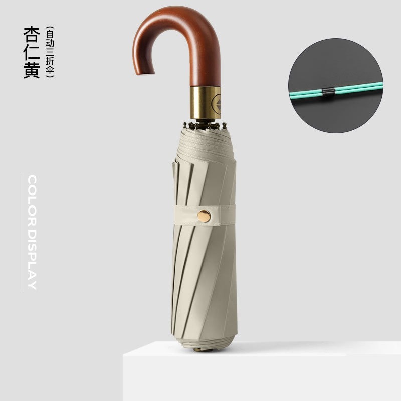 3 배 자동 접기 10-뼈 단단한 나무 곡선 핸들 컬러 접착제 우산 비즈니스 우산 중립 후크 우산 남자의 햇볕이 잘 드는 우산