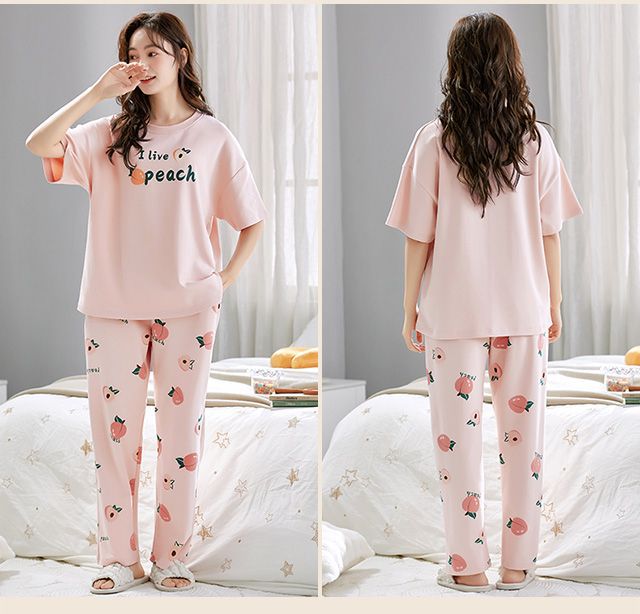 여성용 여름 얇은 잠옷 3종 세트, 가슴 패드 포함, 반바지+긴바지, 외출복으로도 착용 가능, 통기성 좋은 반팔스토어 가기