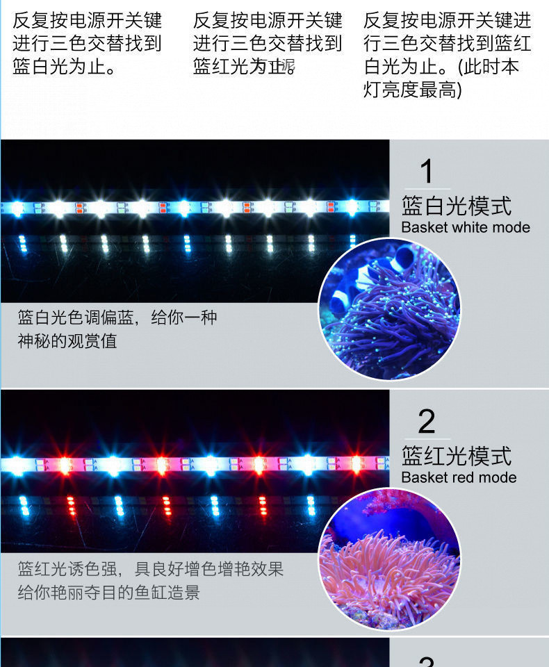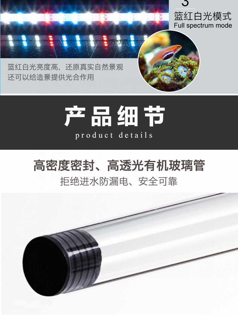 물고기 탱크 빛 삼색 LED 빛 다이빙 빛 물 빛 수륙 양용 색 수족관 조명 도매 공장스토어 가기