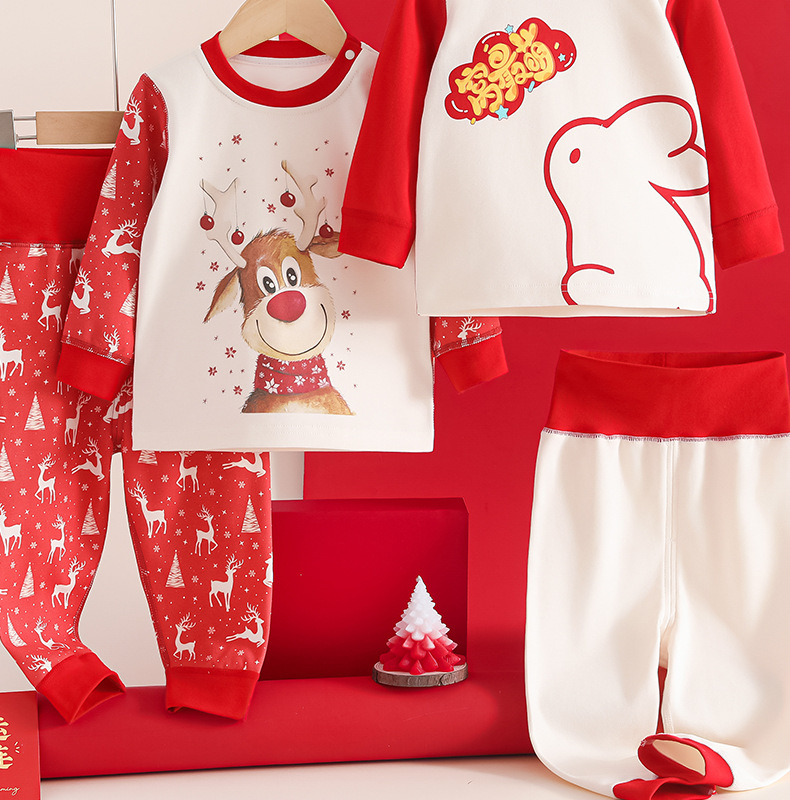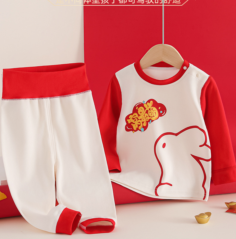 어린이 잠옷 유형 순수 코튼 아기 가을 옷과 남성과 여성을위한 긴 바지 세트 무거운 만화 새해 바닥 가정 의류 속옷