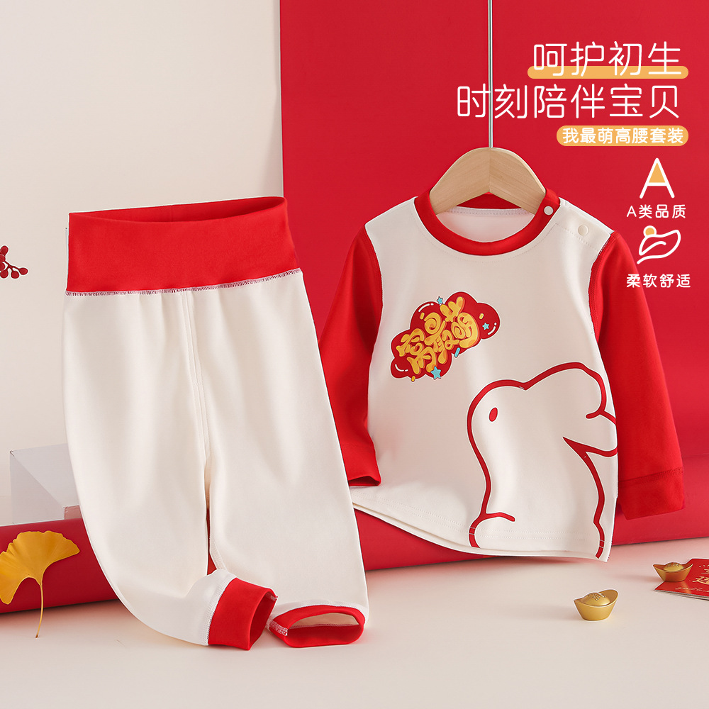 어린이 잠옷 유형 순수 코튼 아기 가을 옷과 남성과 여성을위한 긴 바지 세트 무거운 만화 새해 바닥 가정 의류 속옷스토어 가기
