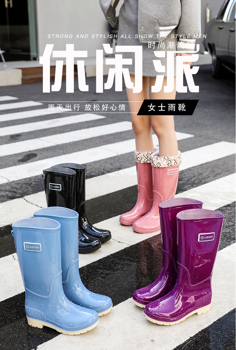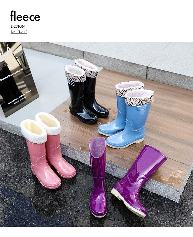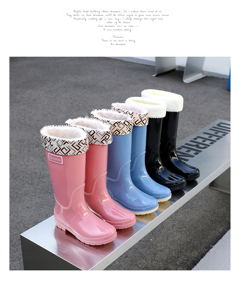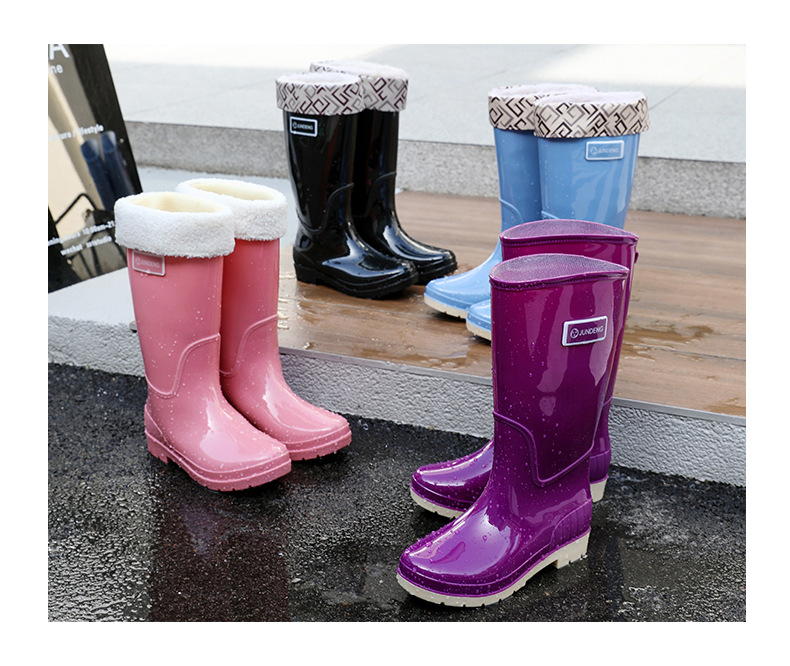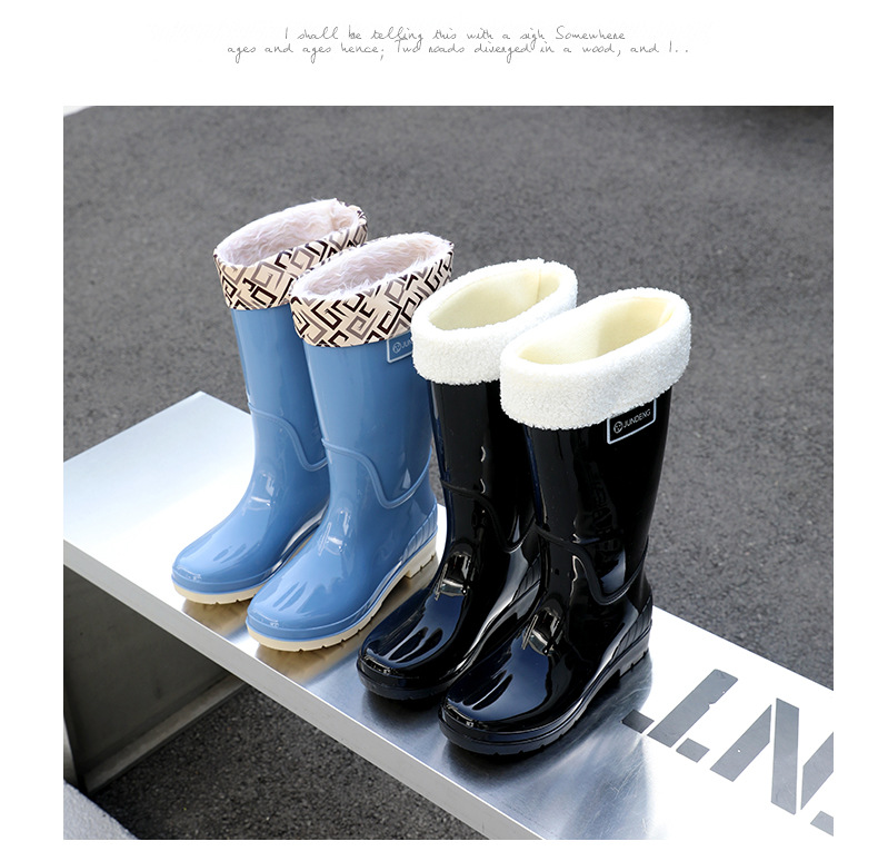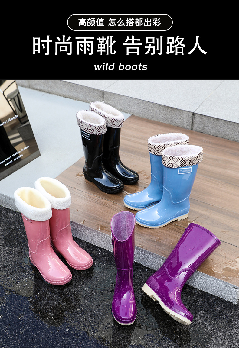 국경 초고속 겨울 따뜻한 기모 방수 신발 PVC 주방 미끄럼 방지 비장화 여성용 높은 장화스토어 가기