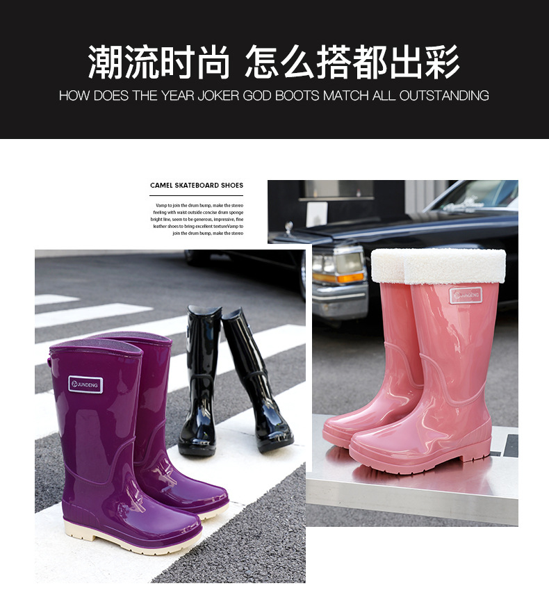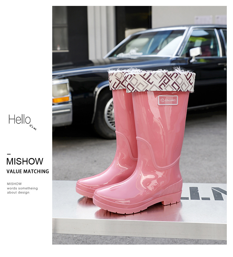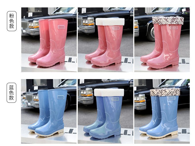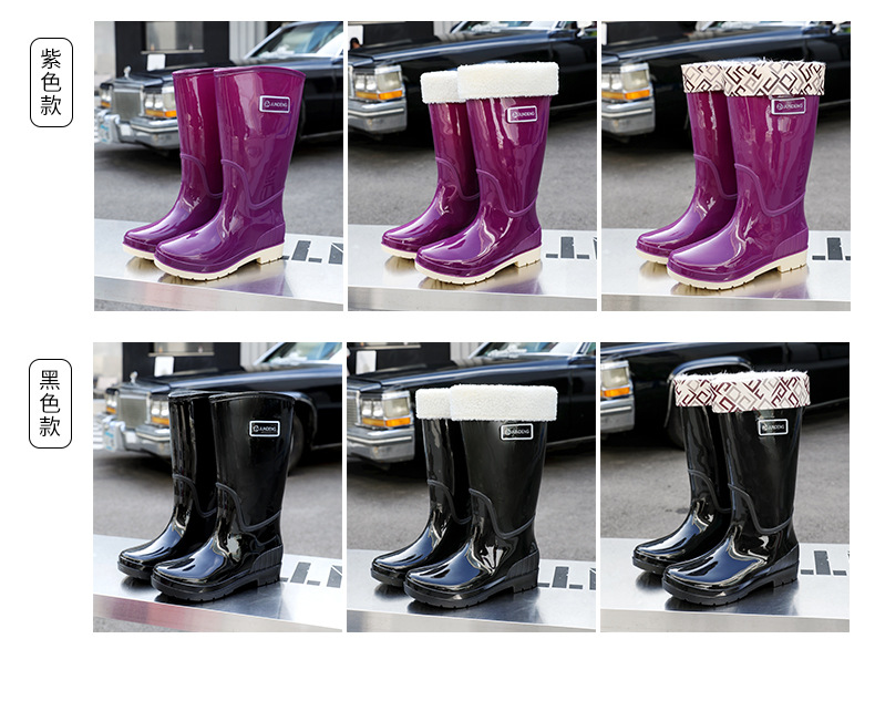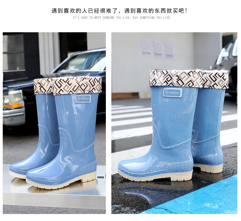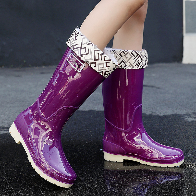 국경 초고속 겨울 따뜻한 기모 방수 신발 PVC 주방 미끄럼 방지 비장화 여성용 높은 장화스토어 가기