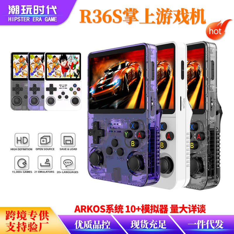 R36S 새로운 오픈 소스 핸드 헬드 게임 콘솔 레트로 GBA 아케이드 크로스 보더 클래식 FC 아케이드 휴대용 PSP 듀얼 시스템스토어 가기