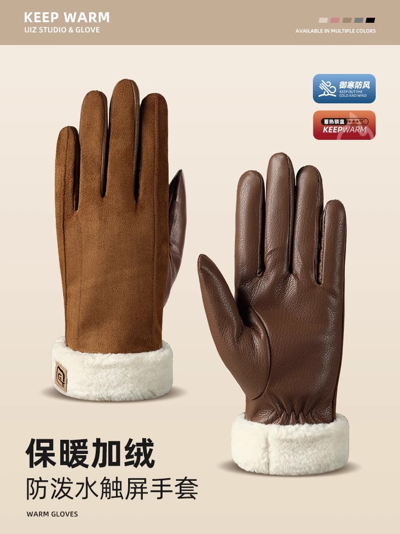 남성용 가죽 장갑 여성용 겨울 기모 두꺼운 감기 따뜻한 사이클링 방풍 터치 스크린 스웨이드 장갑스토어 가기