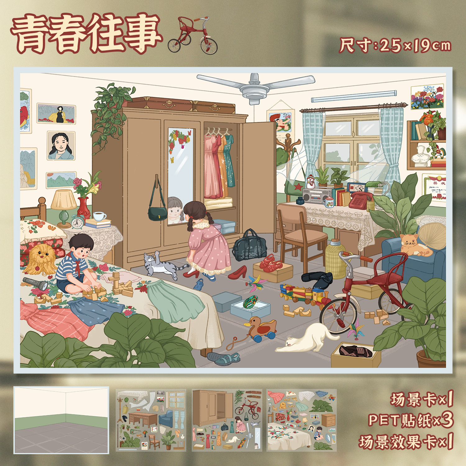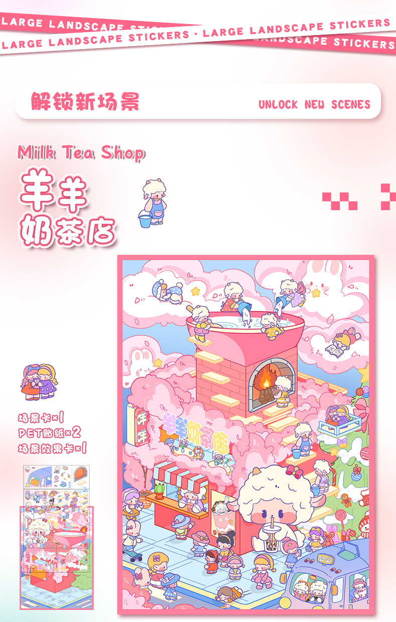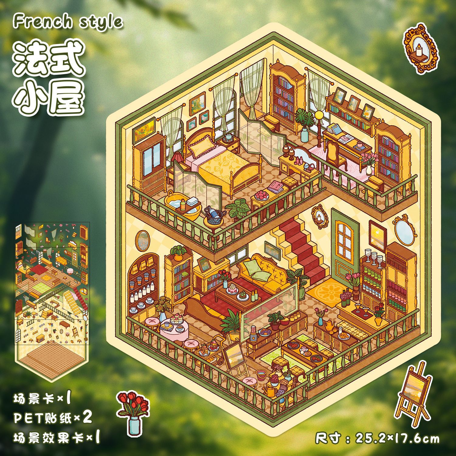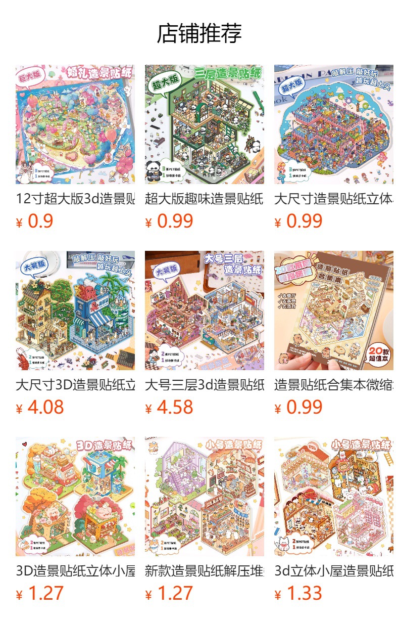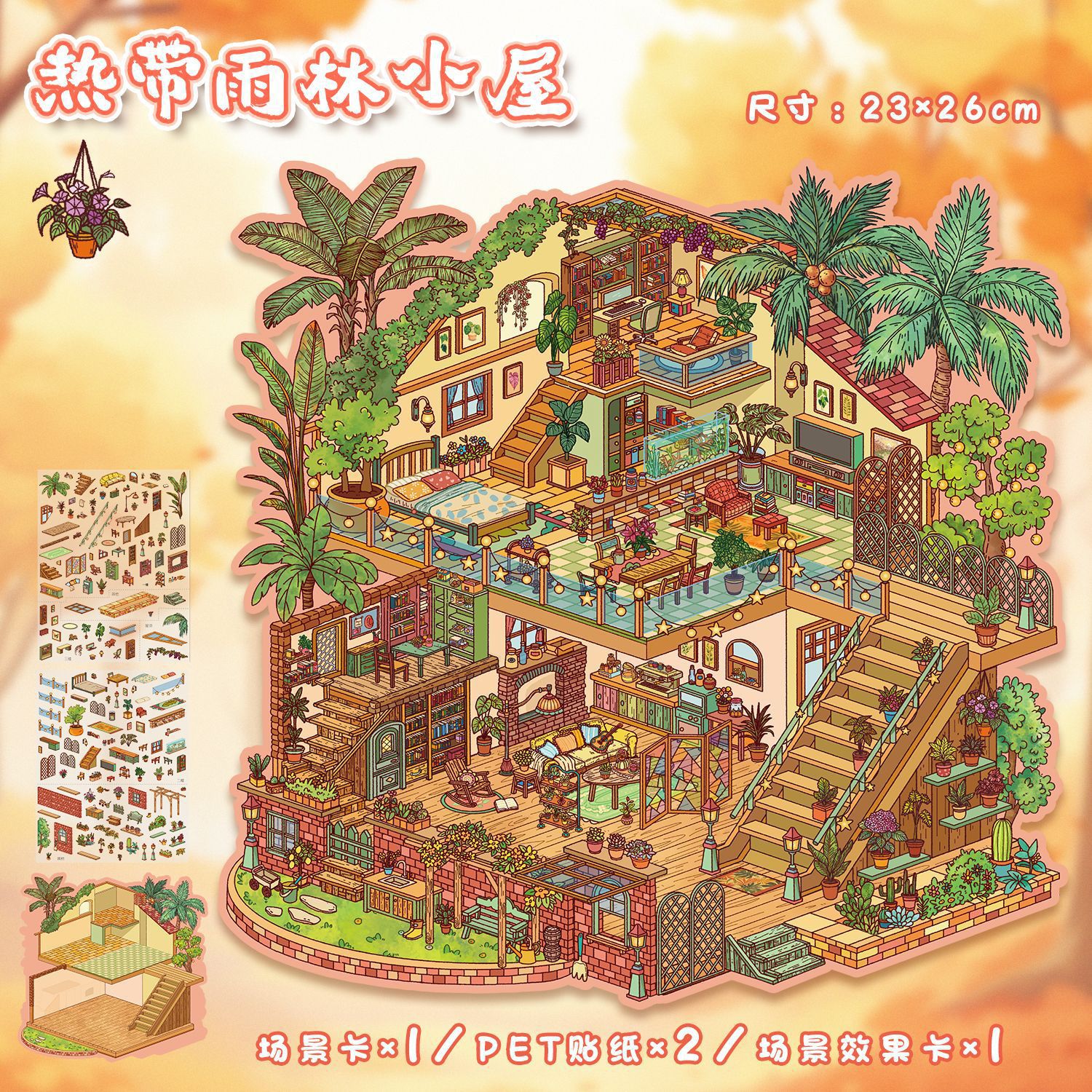 조경 스티커, 대형 미니어처 장면 스티커 컬렉션, 3D 입체 스티커, 어린이 스티커, 만화 DIY 핸드북스토어 가기