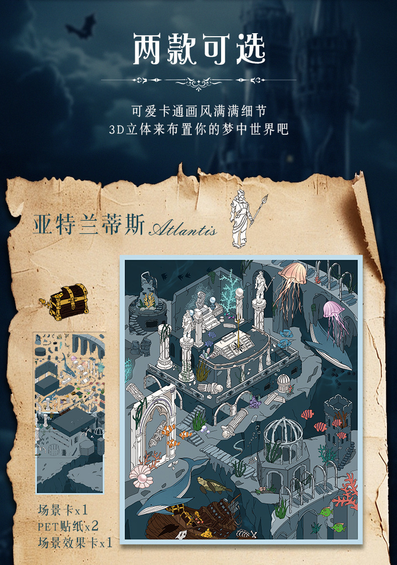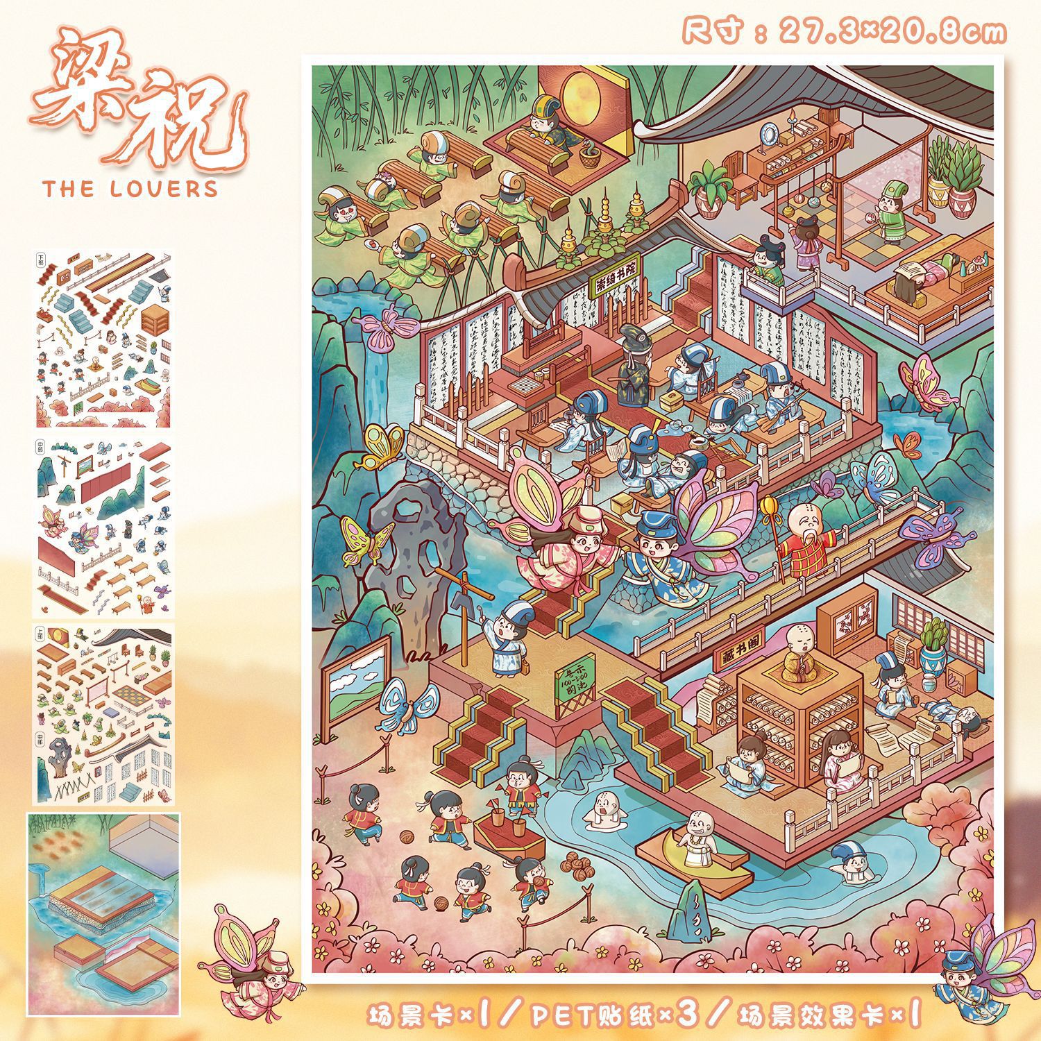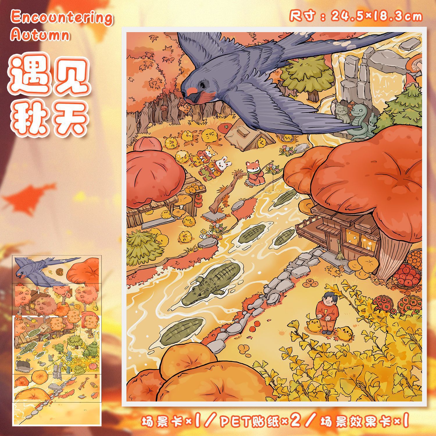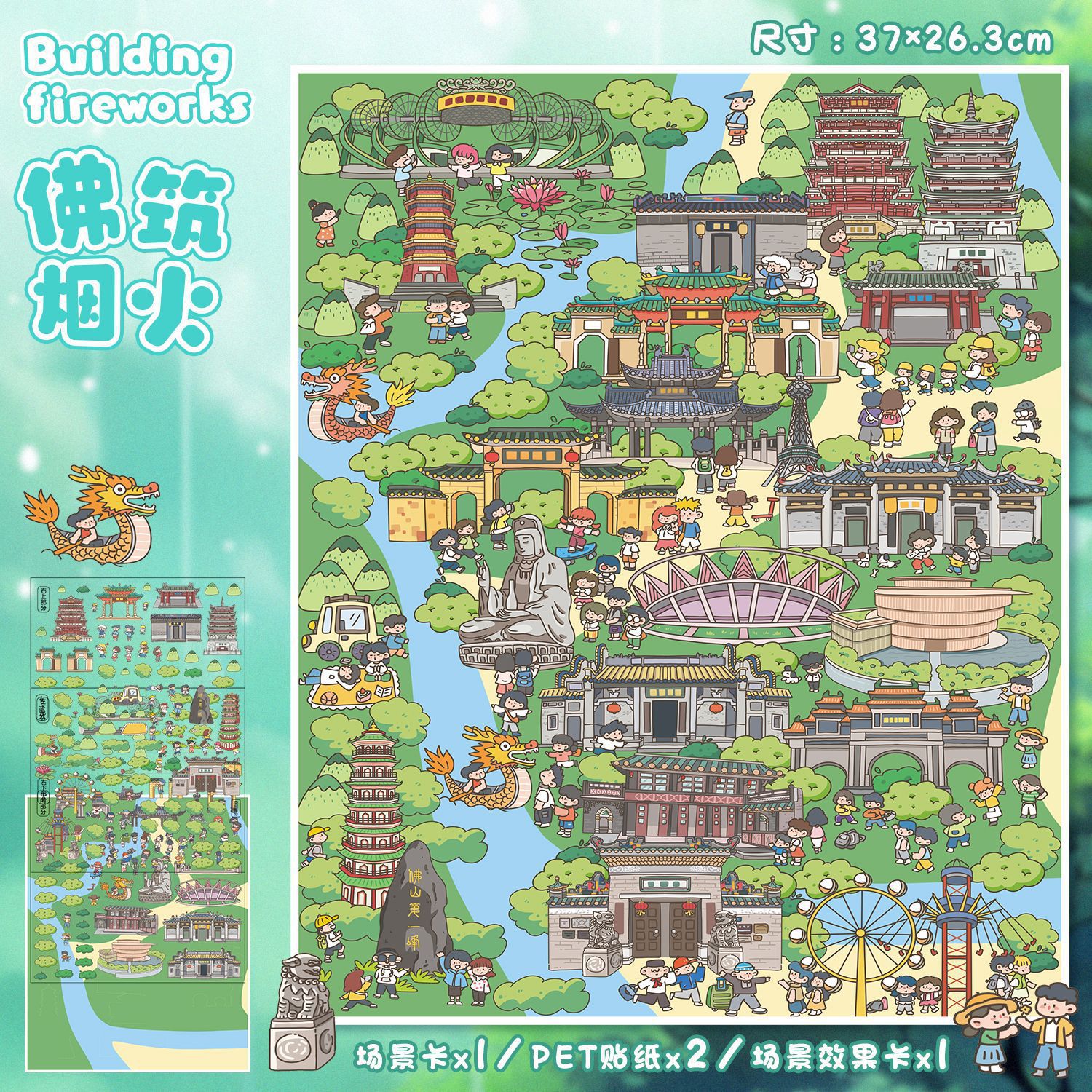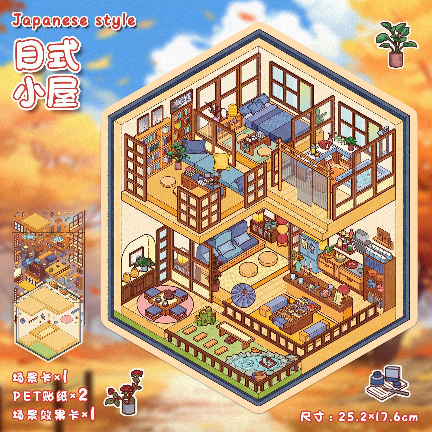 조경 스티커, 대형 미니어처 장면 스티커 컬렉션, 3D 입체 스티커, 어린이 스티커, 만화 DIY 핸드북스토어 가기