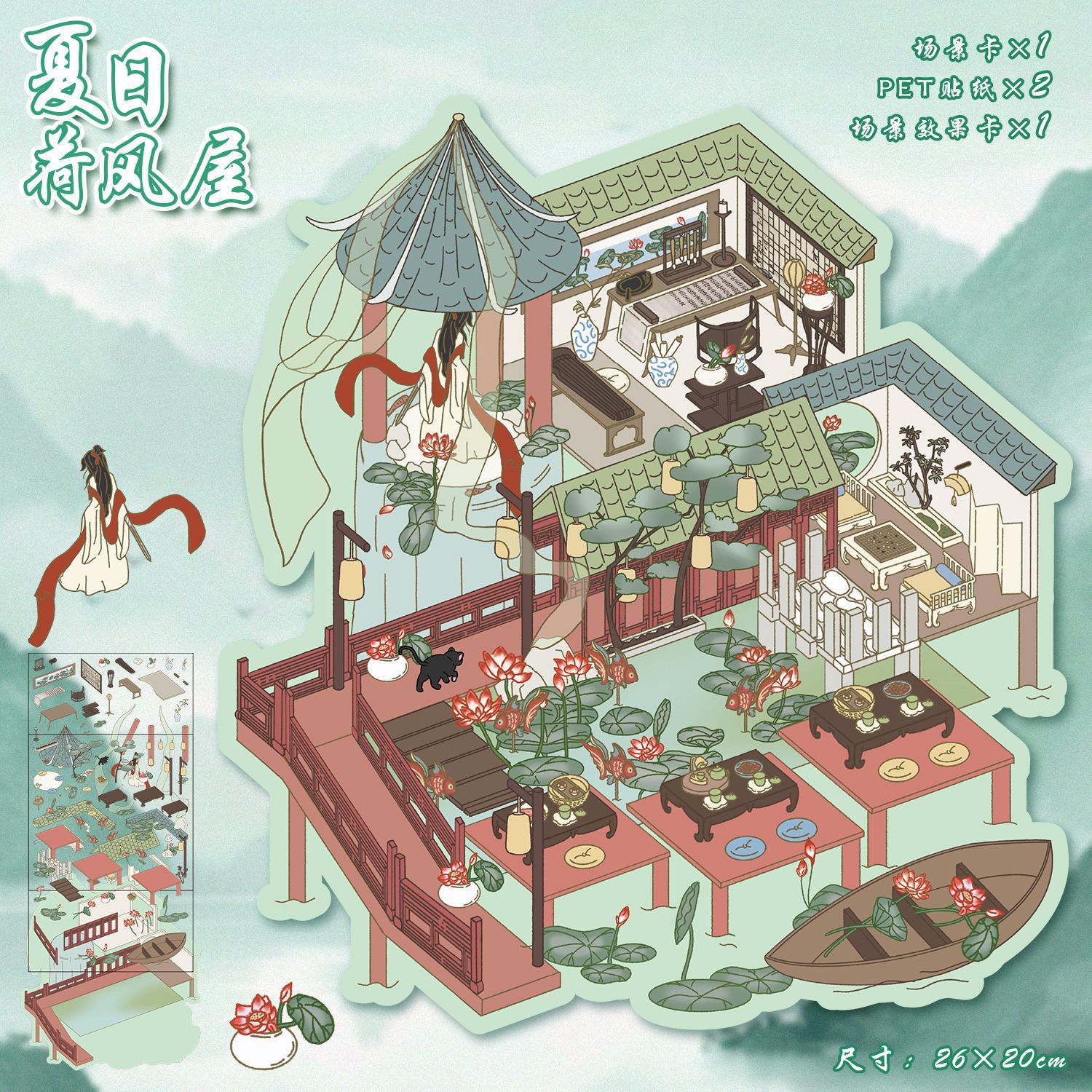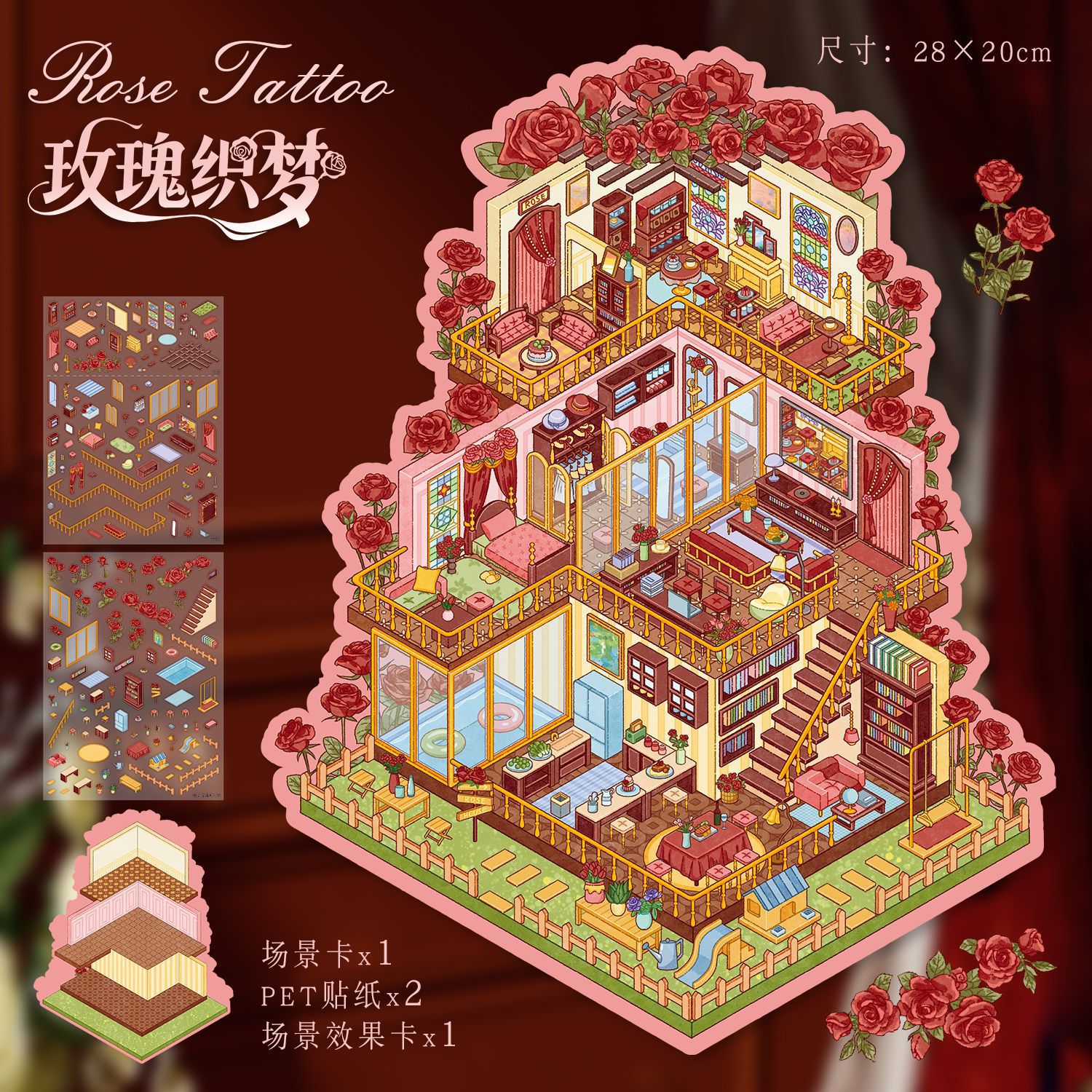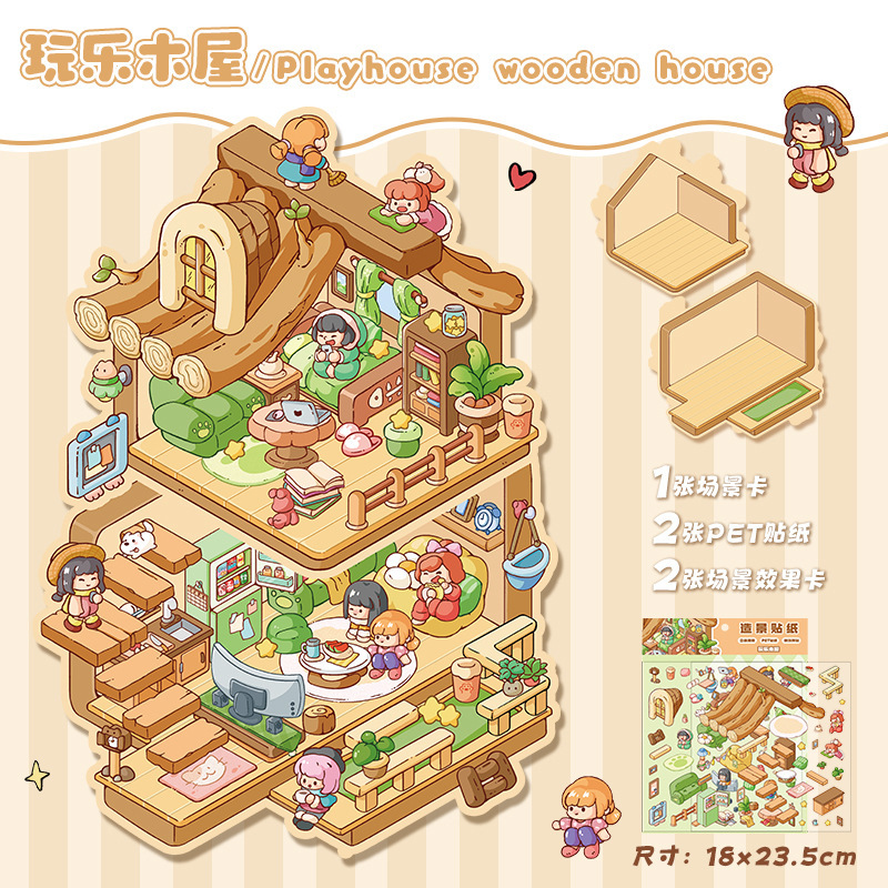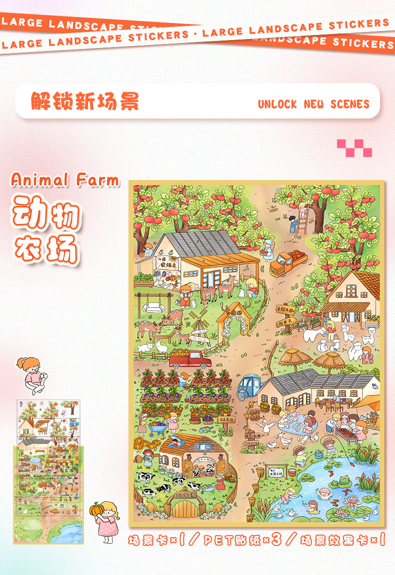 조경 스티커, 대형 미니어처 장면 스티커 컬렉션, 3D 입체 스티커, 어린이 스티커, 만화 DIY 핸드북