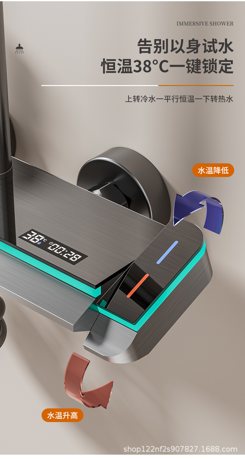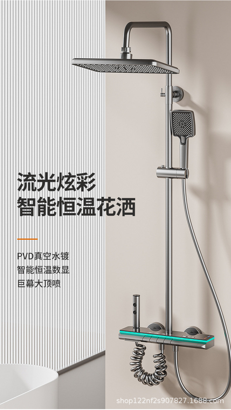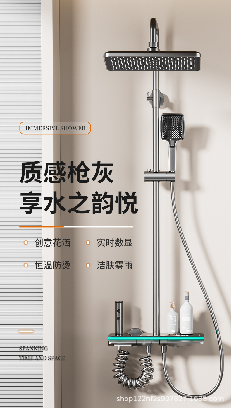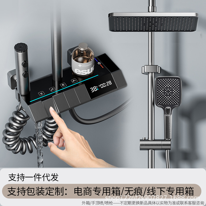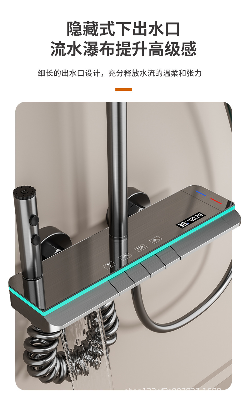 공장 스트레이트 피아노 건 그레이 디지털 디스플레이 분위기 빛 일정한 온도 샤워 세트 모든 구리 디지털 디스플레이 증가 가정용 욕실스토어 가기