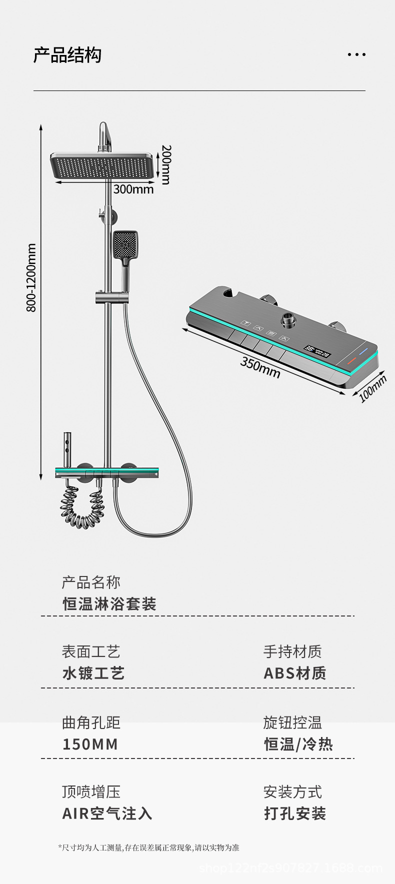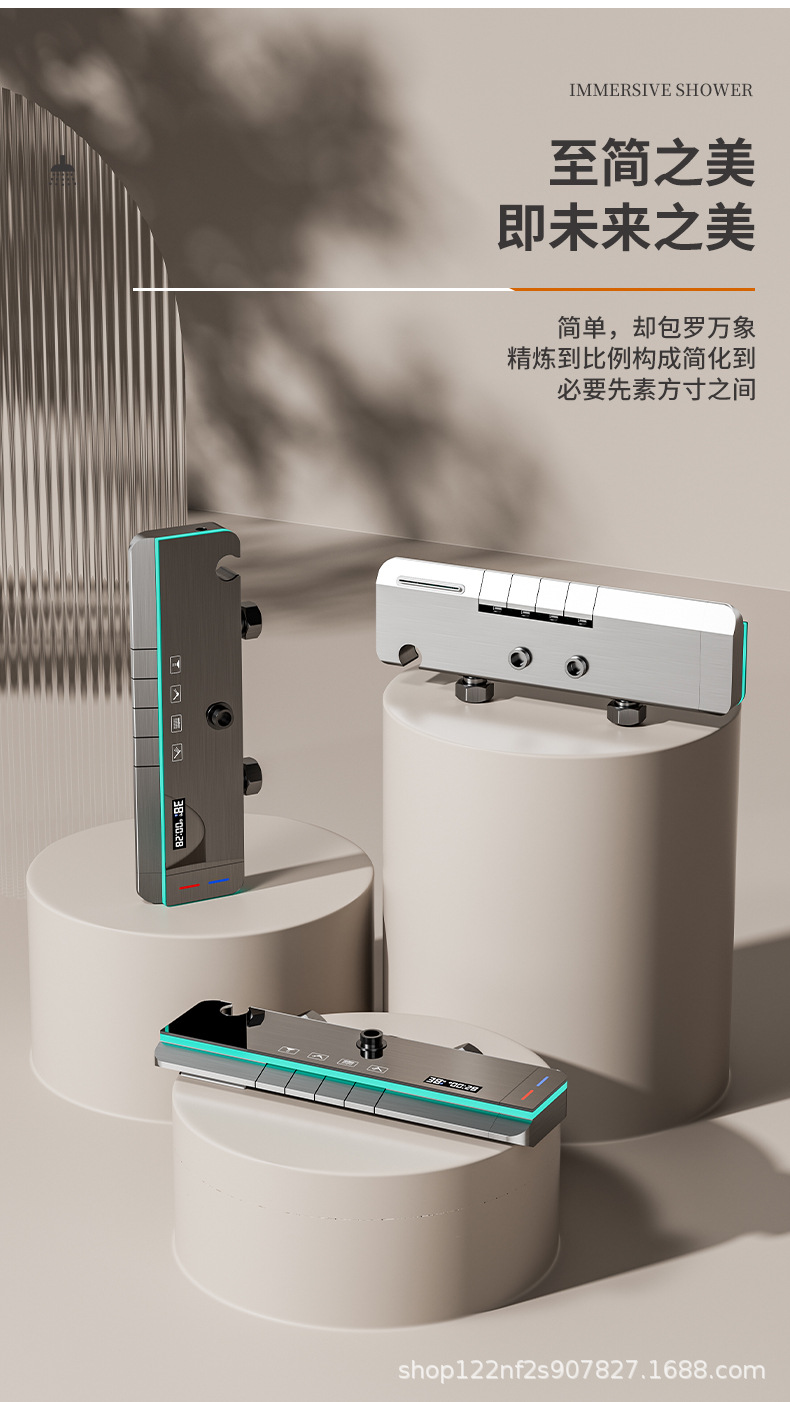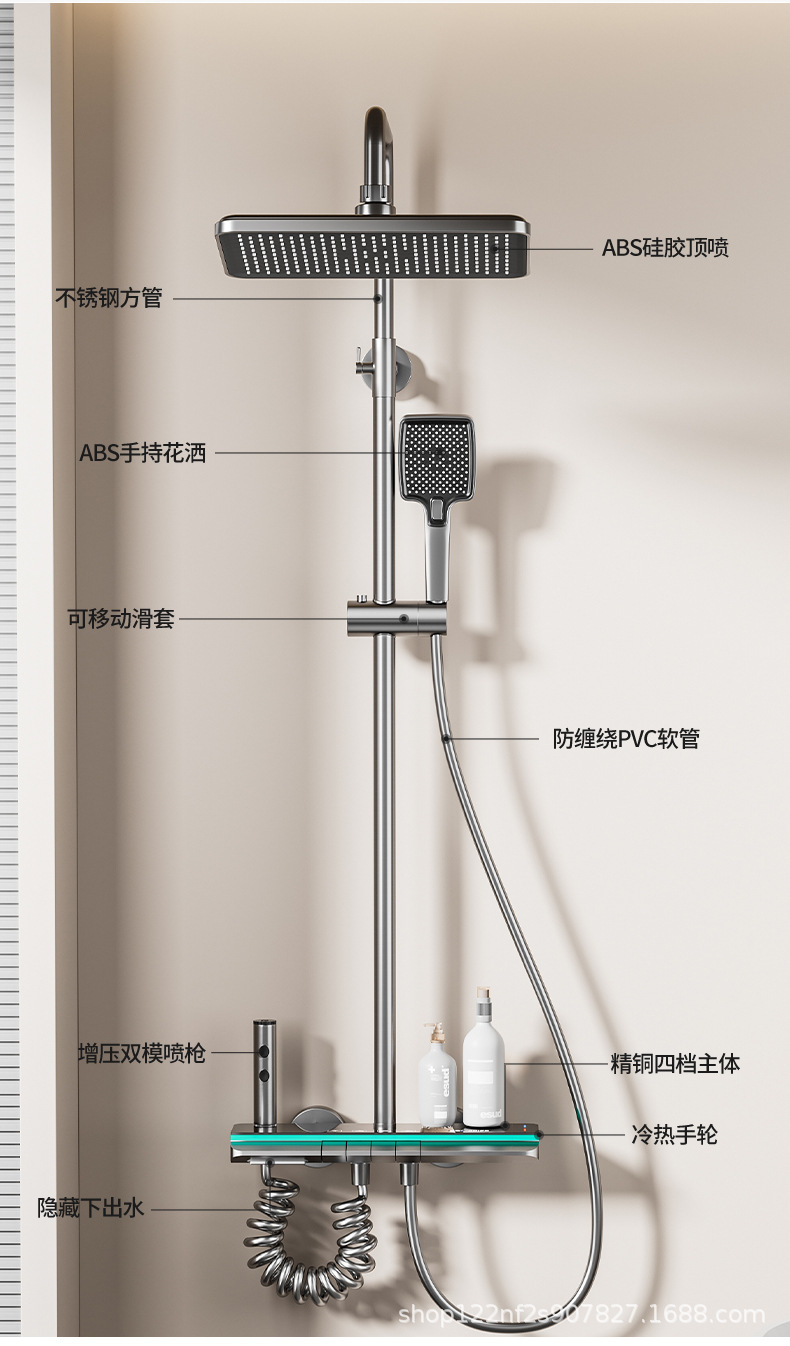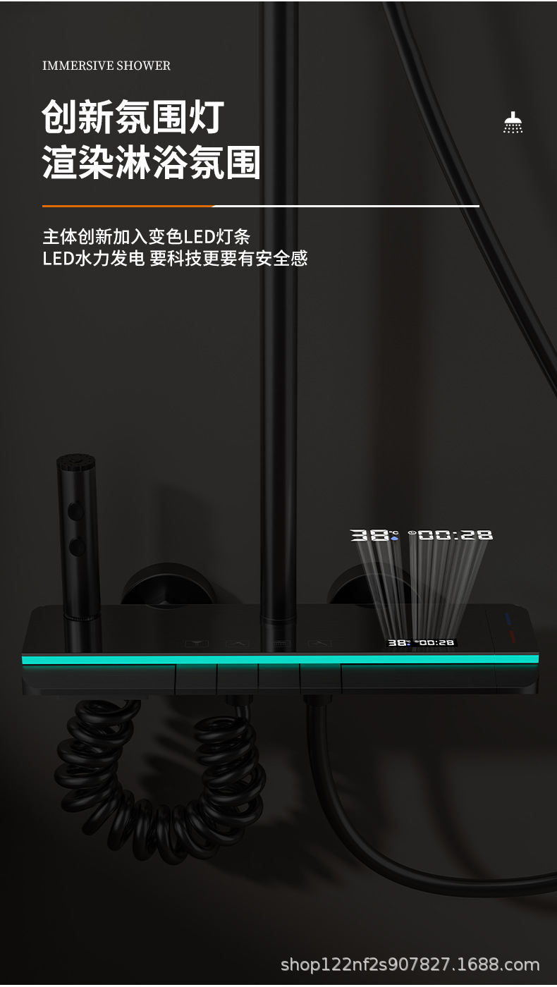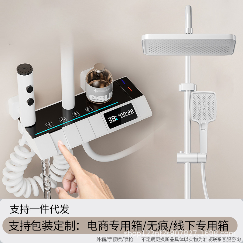 공장 스트레이트 피아노 건 그레이 디지털 디스플레이 분위기 빛 일정한 온도 샤워 세트 모든 구리 디지털 디스플레이 증가 가정용 욕실스토어 가기