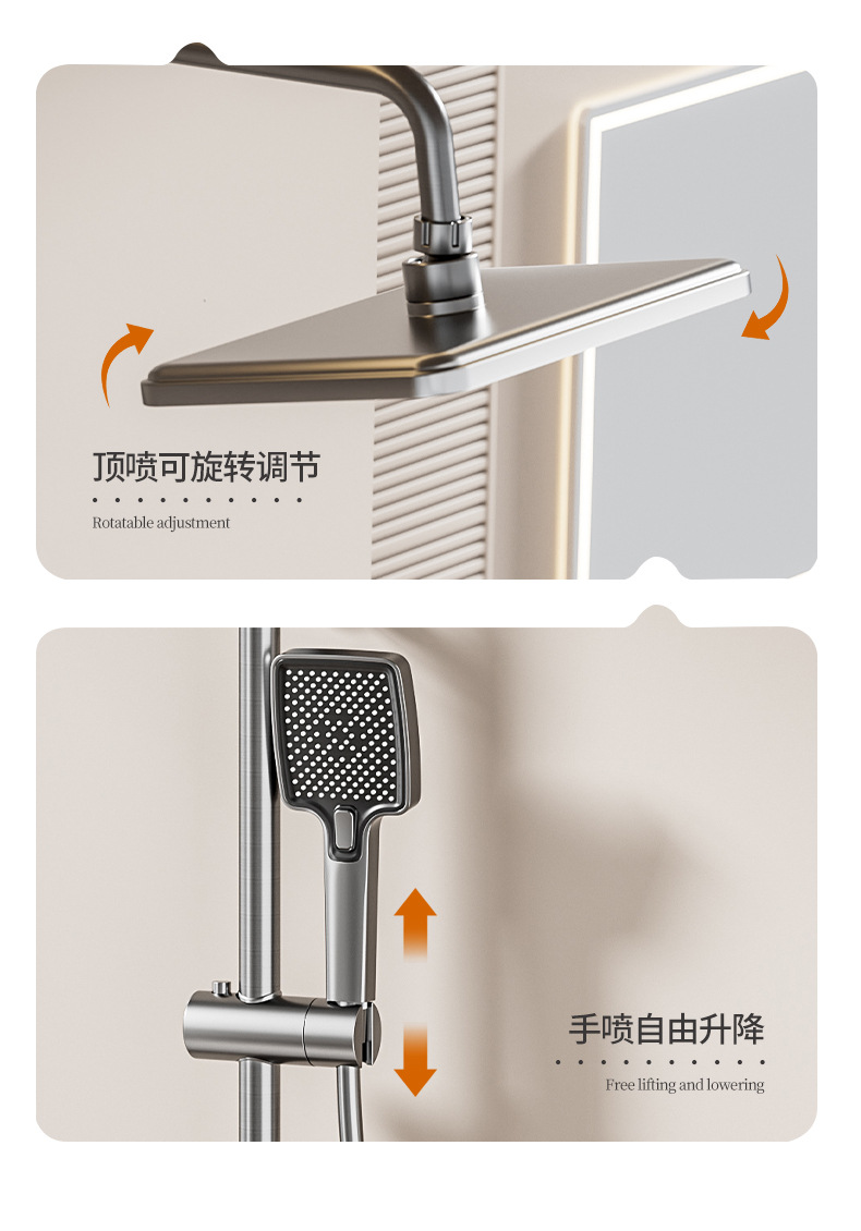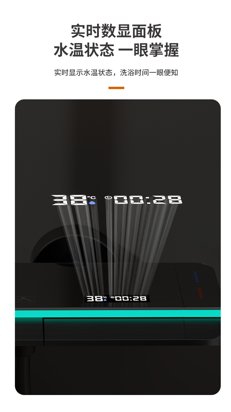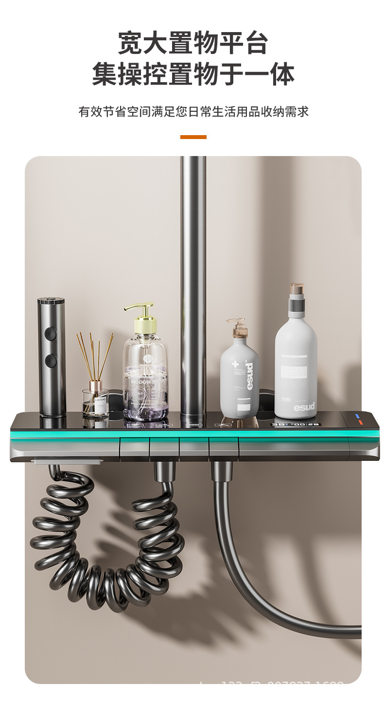 공장 스트레이트 피아노 건 그레이 디지털 디스플레이 분위기 빛 일정한 온도 샤워 세트 모든 구리 디지털 디스플레이 증가 가정용 욕실