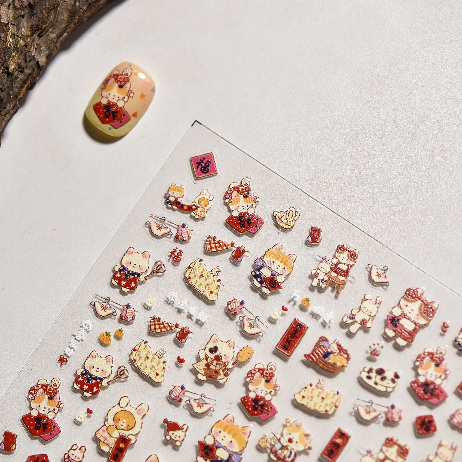 Tomoni 얇은 터프 네일 아트 스티커 폭발성 일본 문구 어린이 네일 스티커 축복받은 새끼 고양이 네일 아트 액세서리 스티커