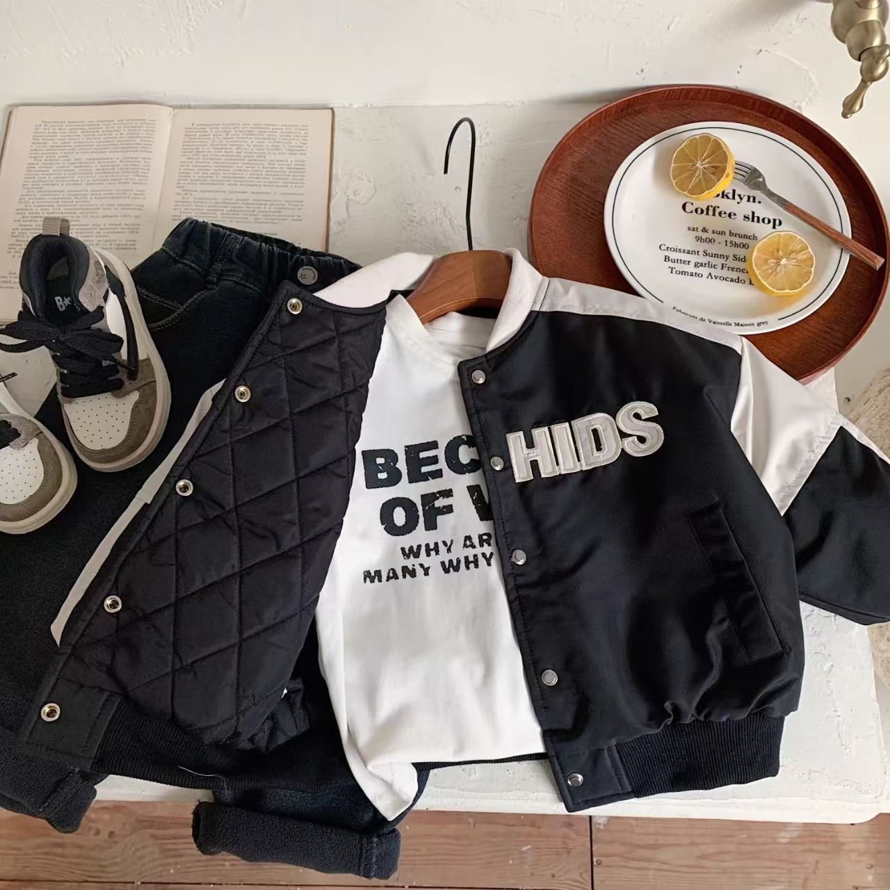새로운 어린이 면화 패딩 야구 세트 가을과 겨울 면화 패딩 코트 소년의 겨울 두꺼운 코트 미국 아동복 베이비 재킷