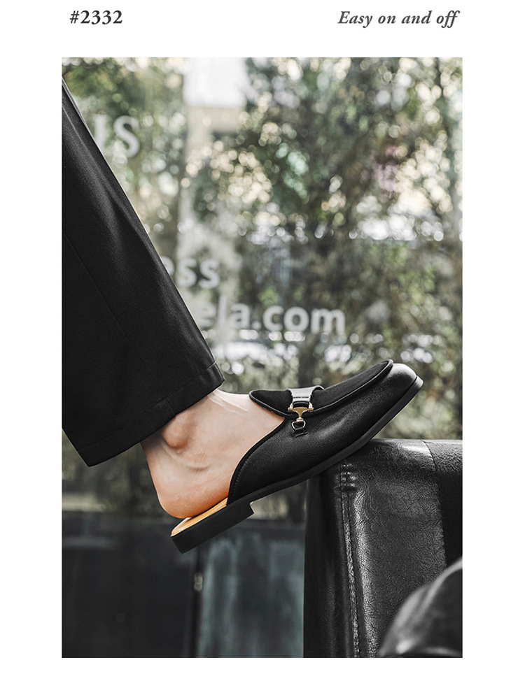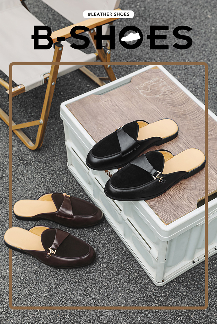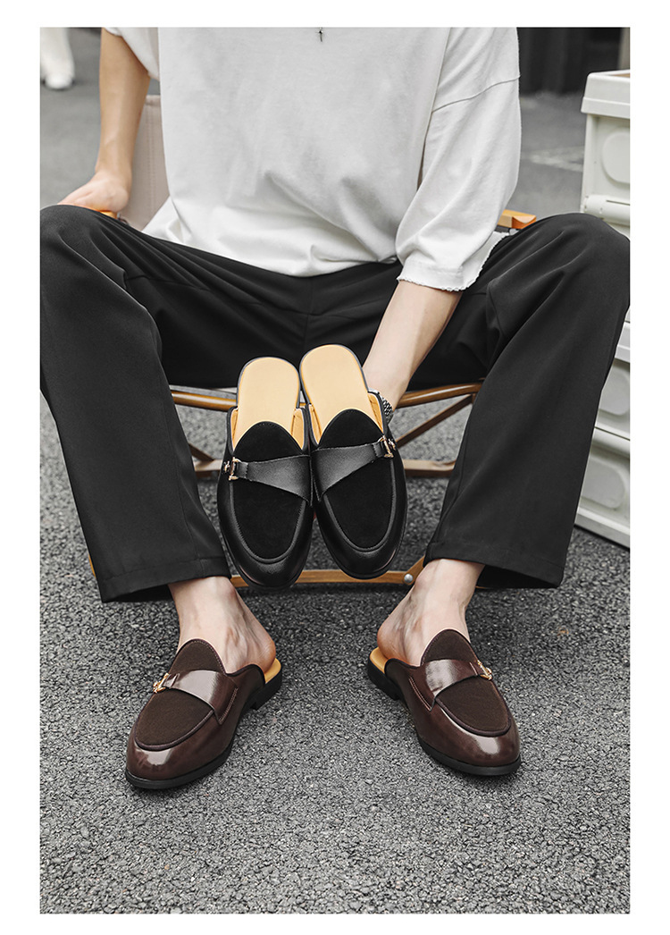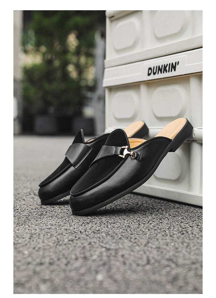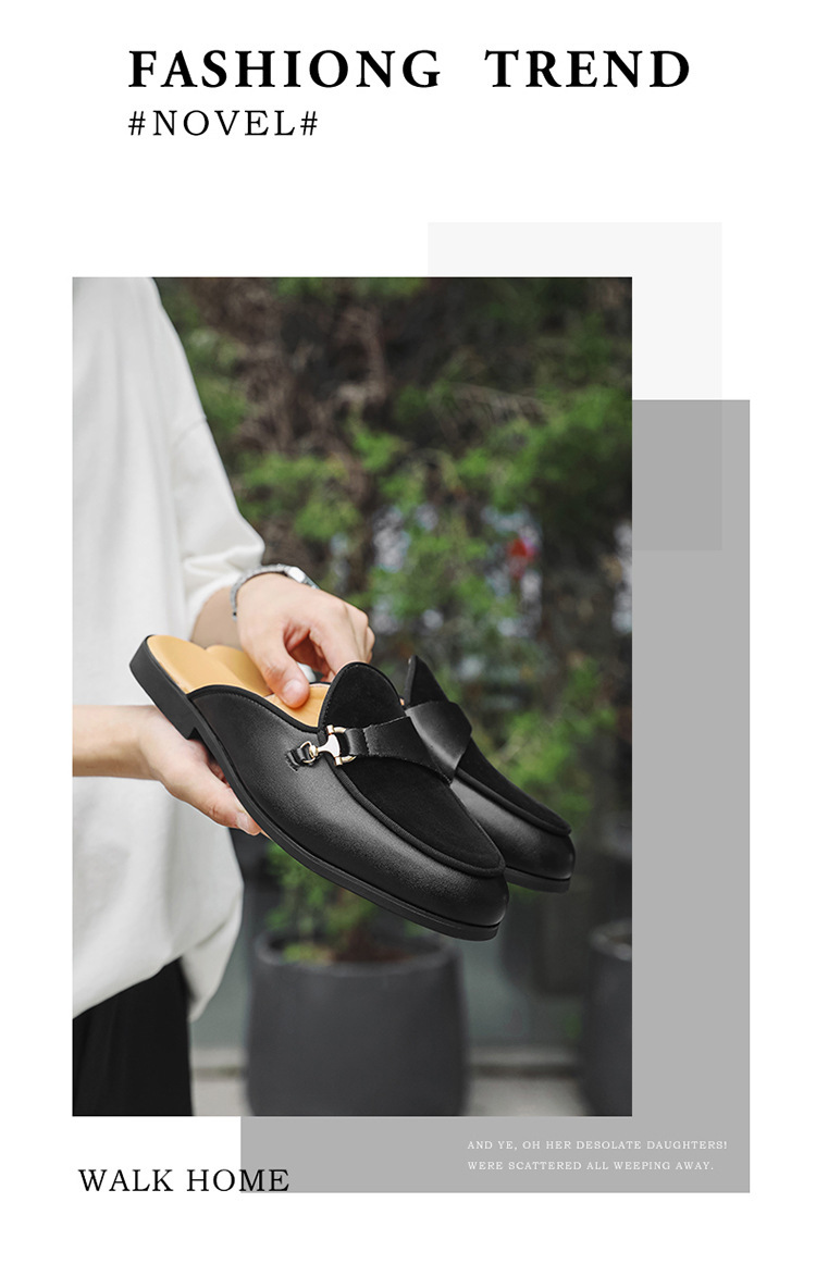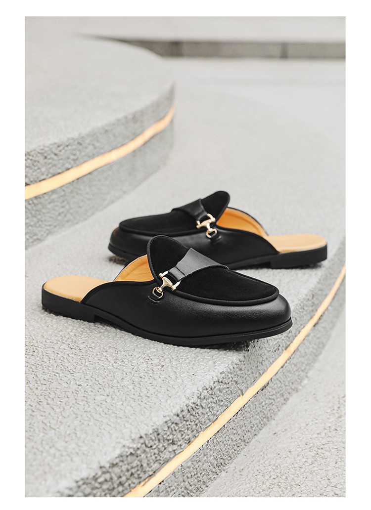 국경 간 남성 신발 여름 대형 통기성 게으른 가죽 슬리퍼 남성 유럽과 미국의 영국 가벼운 럭셔리 힐리스 슬립 온 남성 신발스토어 가기