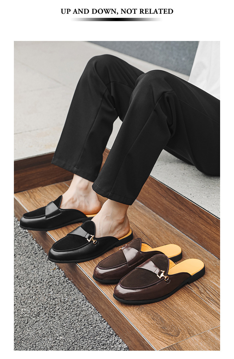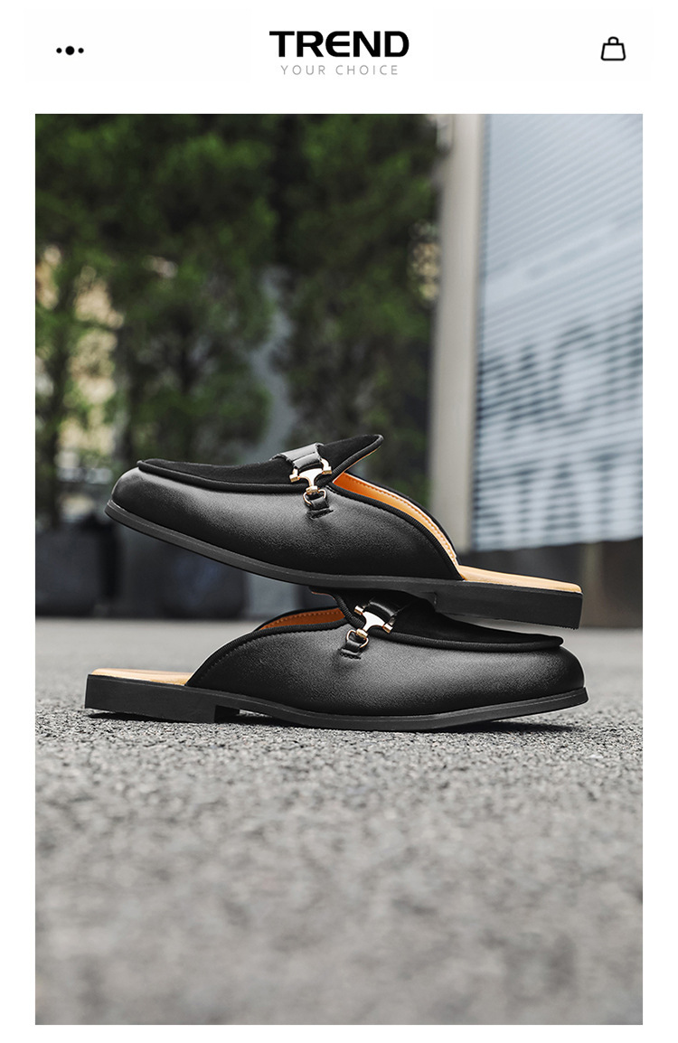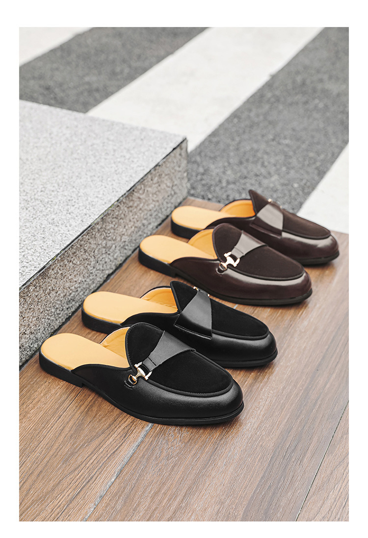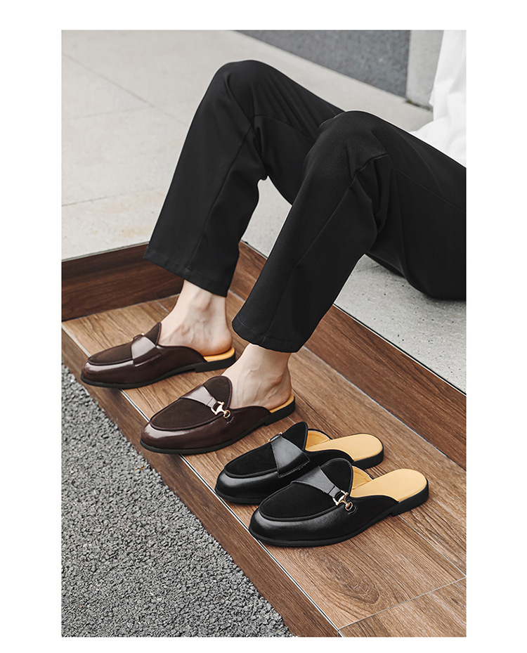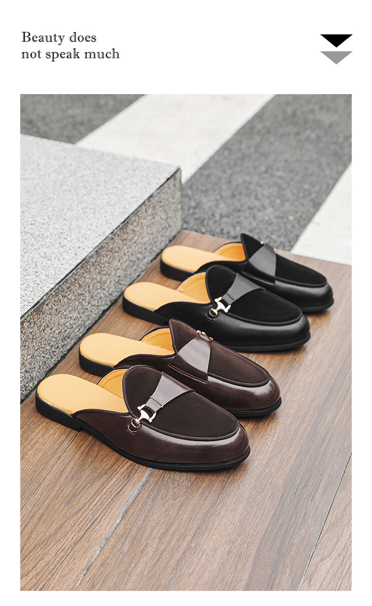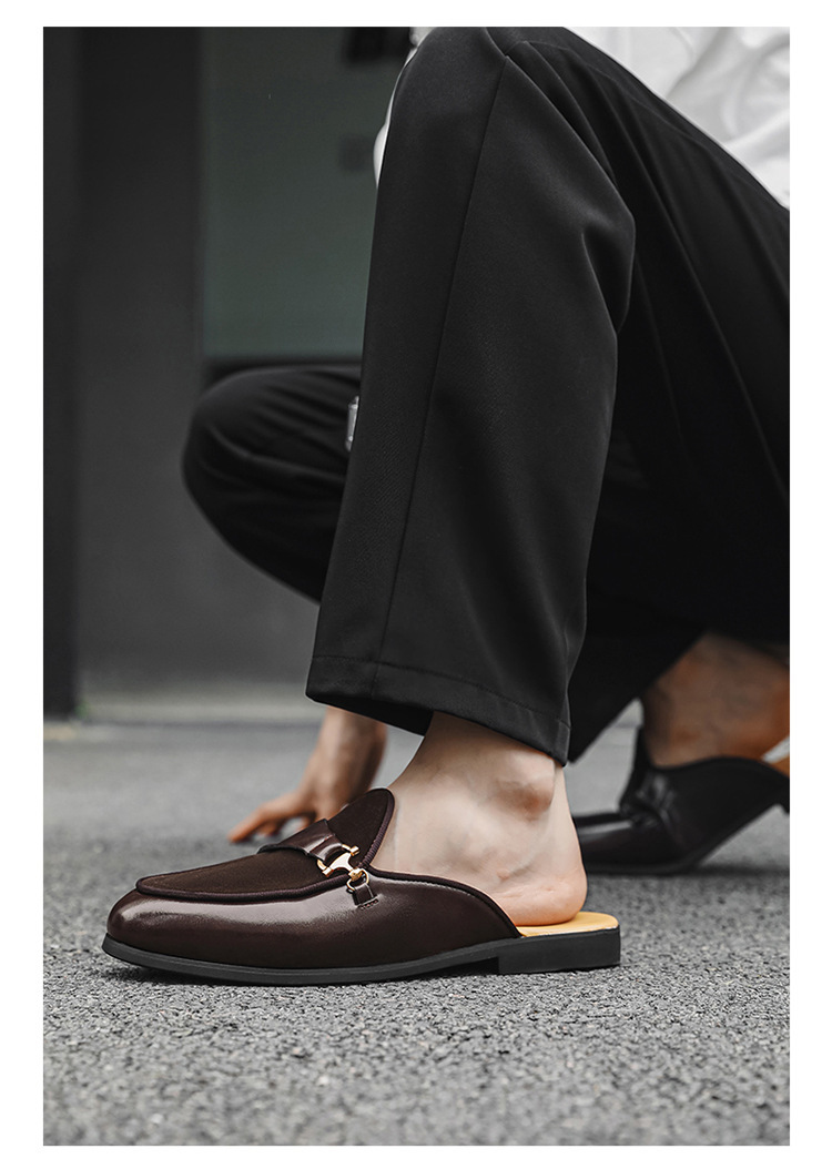 국경 간 남성 신발 여름 대형 통기성 게으른 가죽 슬리퍼 남성 유럽과 미국의 영국 가벼운 럭셔리 힐리스 슬립 온 남성 신발스토어 가기
