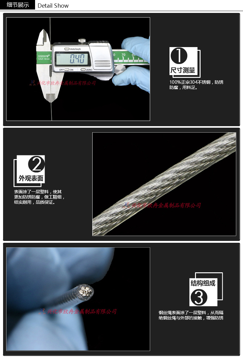 304 스테인레스 스틸 플라스틱 코팅 와이어 로프 플라스틱 코팅 와이어 로프 0.4mm 두께스토어 가기