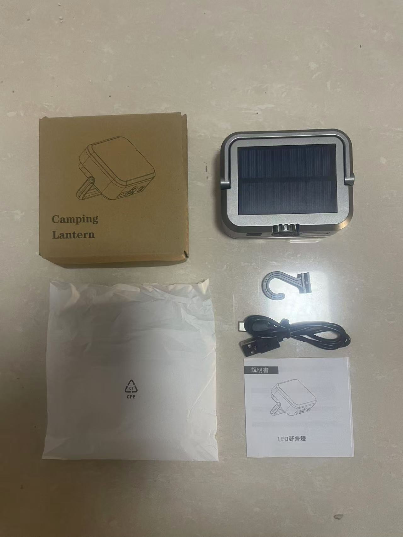 • 실버 충전식 태양광 캠핑등 - 4000mAh