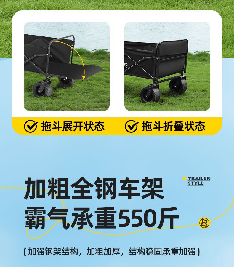 캠핑 카트 접이식 야외 핸드 푸시 피크닉 자동차 휴대용 캠프 트레일러 풀 로드 다기능 캠핑 스톨 카스토어 가기