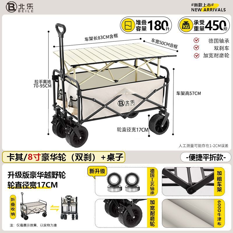 • 업그레이드/ 8inch 오프로드 휠/더블 브레이크+하이트닝 테이블 베이지 [크기가 거짓이 아닙니다/두꺼운 옥스포드 천]