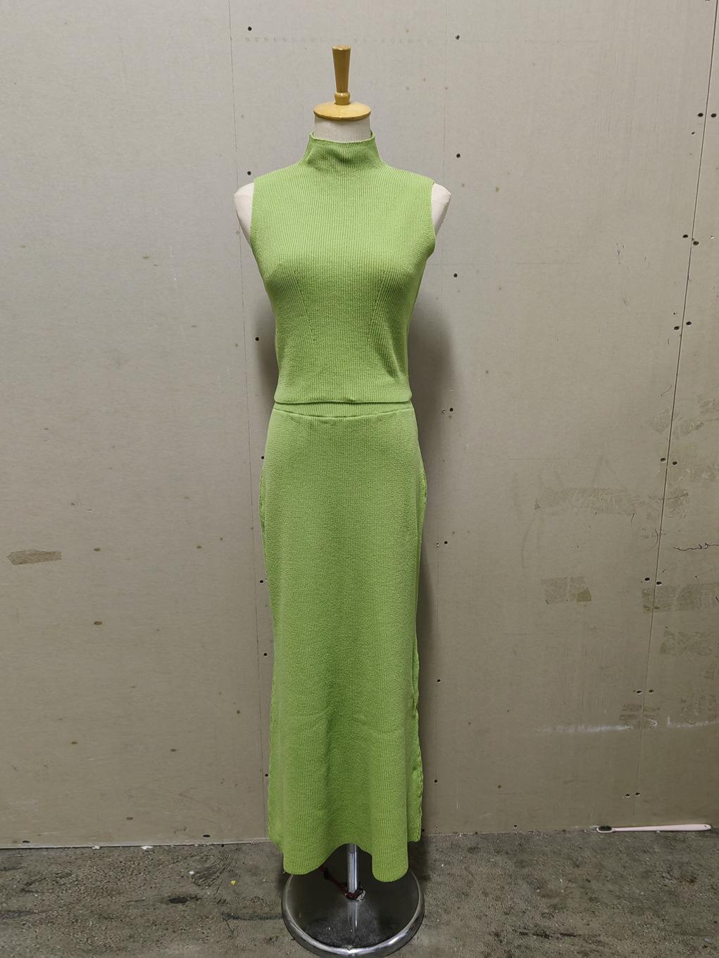 2025 봄과 가을 여성 의류 유럽과 미국의 우아한 양모 투피스 민소매 니트 하이 칼라 조끼 스커트 세트 스커트스토어 가기