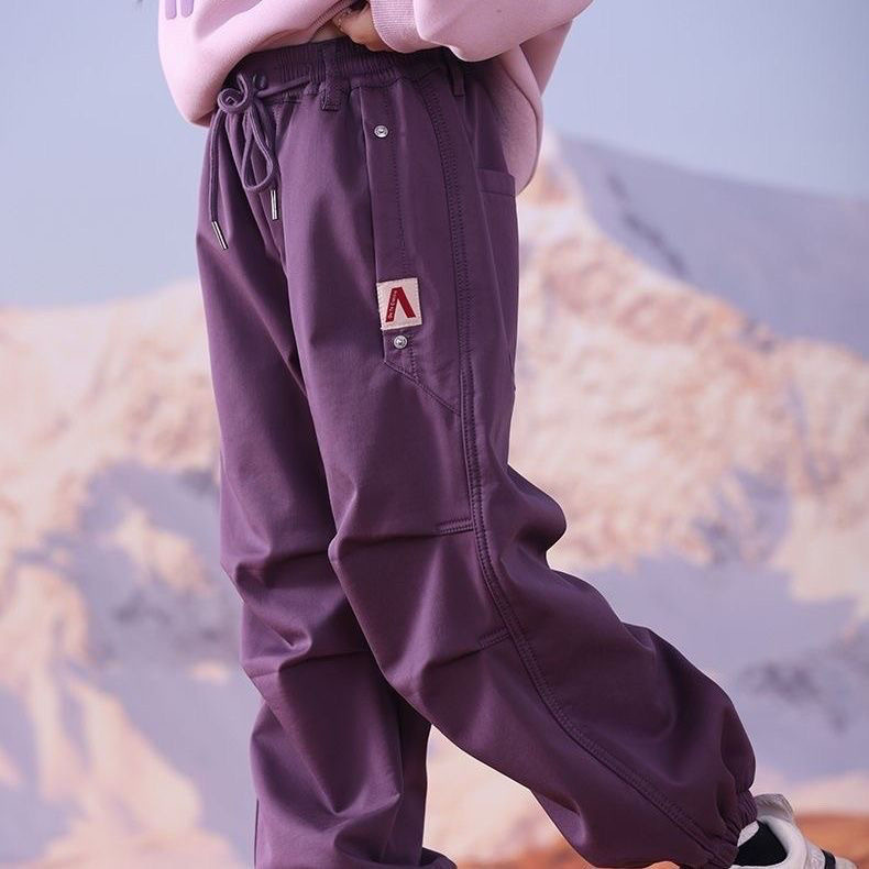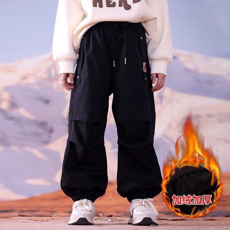 여자 기모 바지 겨울 2024 새로운 겨울 착용 어린이 소녀 큰 아이들의 두꺼운 스포츠 러시 포워드 바지 가을과 겨울 트렌디스토어 가기