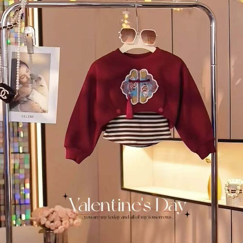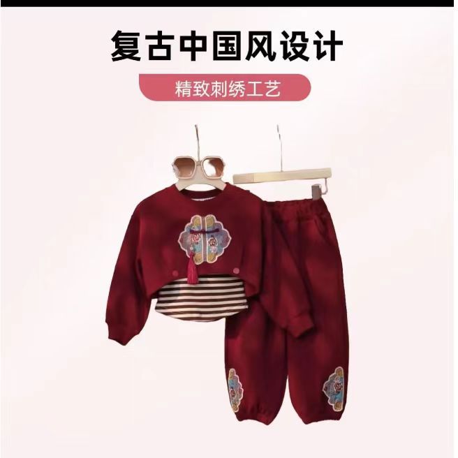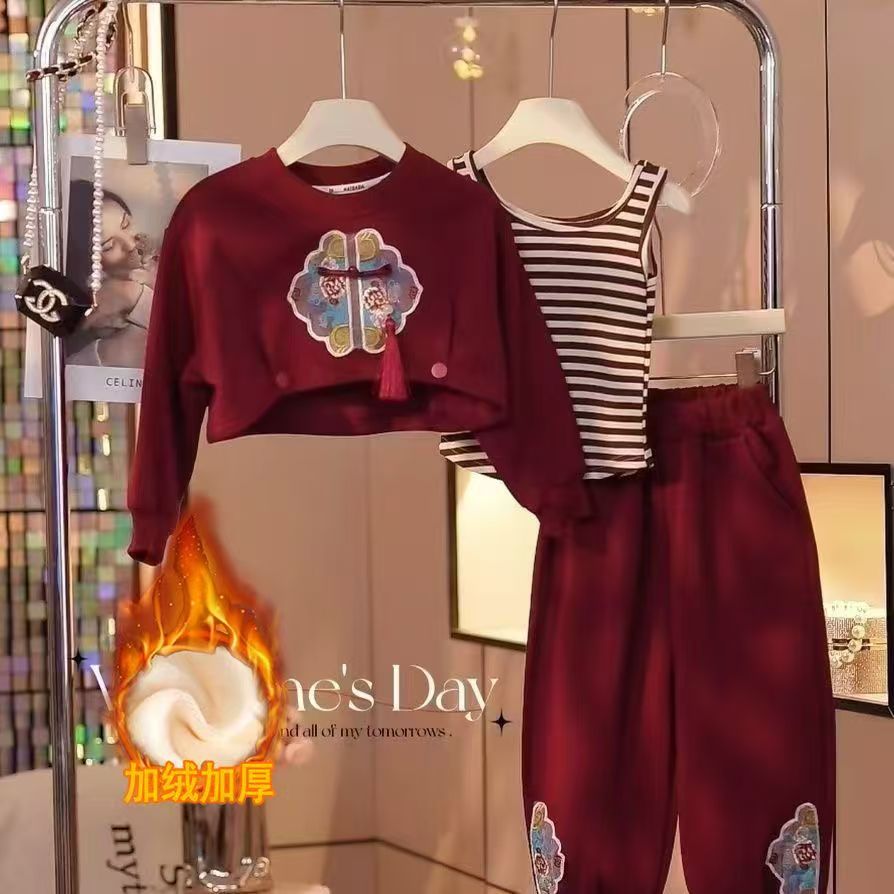 소녀 가을 겨울 세트 2024 새로운 중국 스타일 국가 스타일 어린이 아기 서양 스타일 땀 기모 3 피스 세트스토어 가기