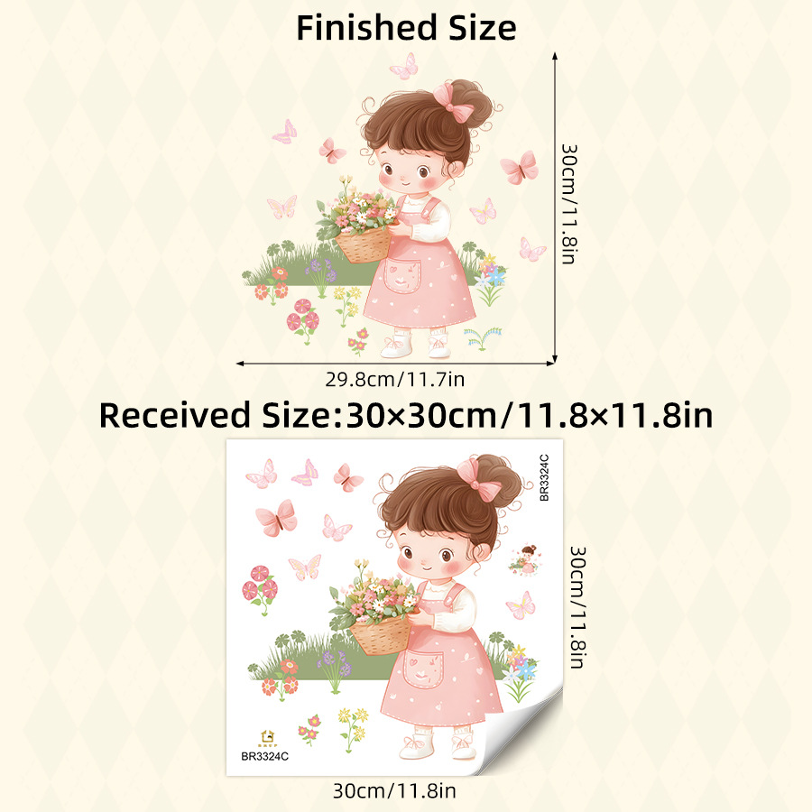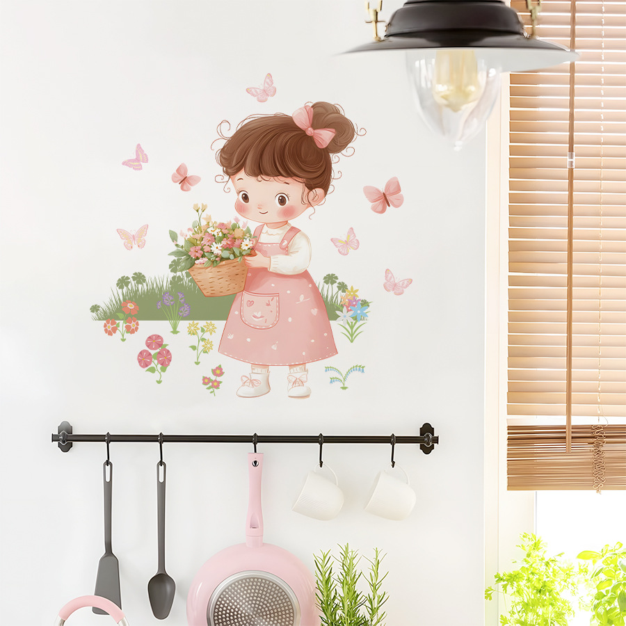 귀여운 만화 꽃 작은 소녀 나비 패턴 자기 접착 벽 스티커 캐비닛 도어 냉장고 장식 스티커 BR3332C스토어 가기