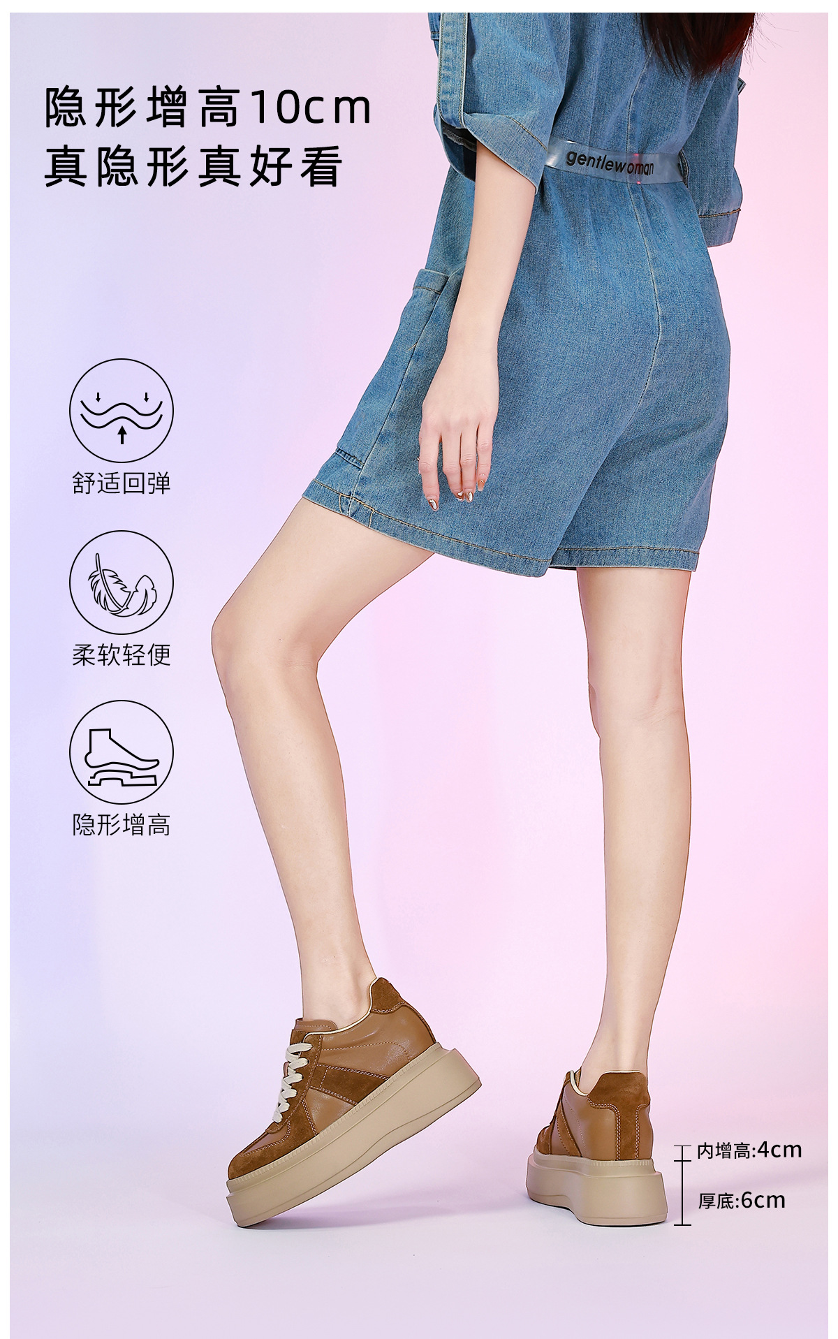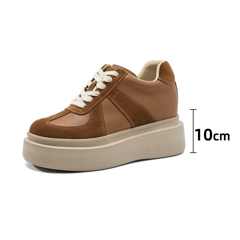 작은 피곤하지 않은 발 보이지 않음 증가 10cm 독일 훈련 신발 여성의 증가 된 Maillard 양가죽 두꺼운 밑창 여성 신발 가을과 겨울