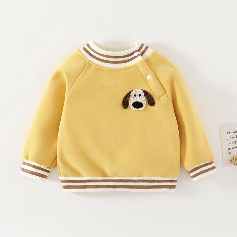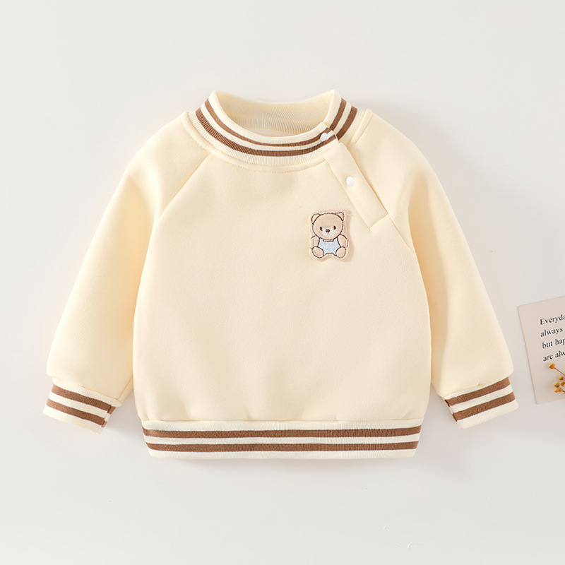 아동용 기모 안감 두꺼운 스웨트셔츠, 따뜻한 이너웨어 겸 외투, 작은 후크 디테일, 봄, 가을, 겨울용 남녀 아동용 풀오버