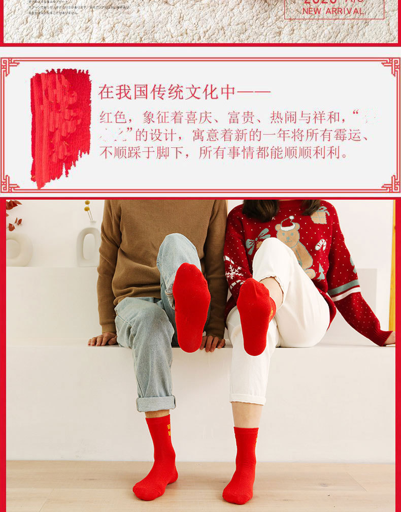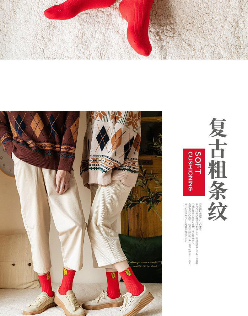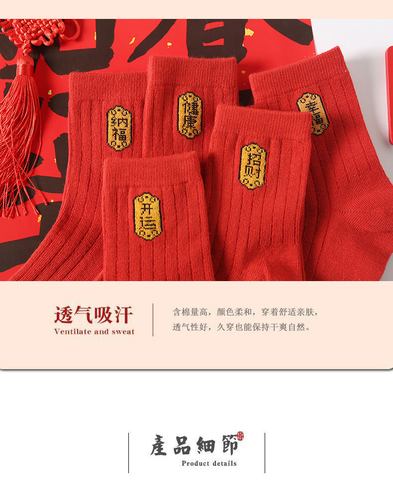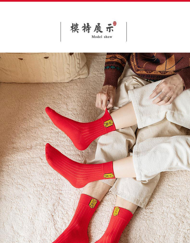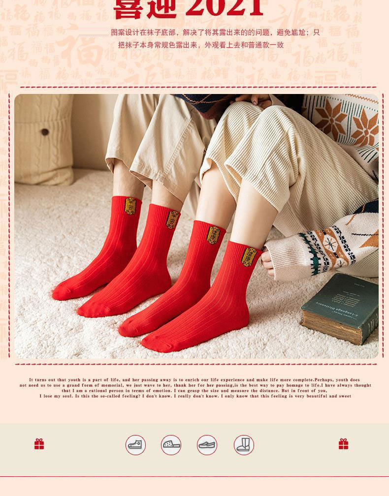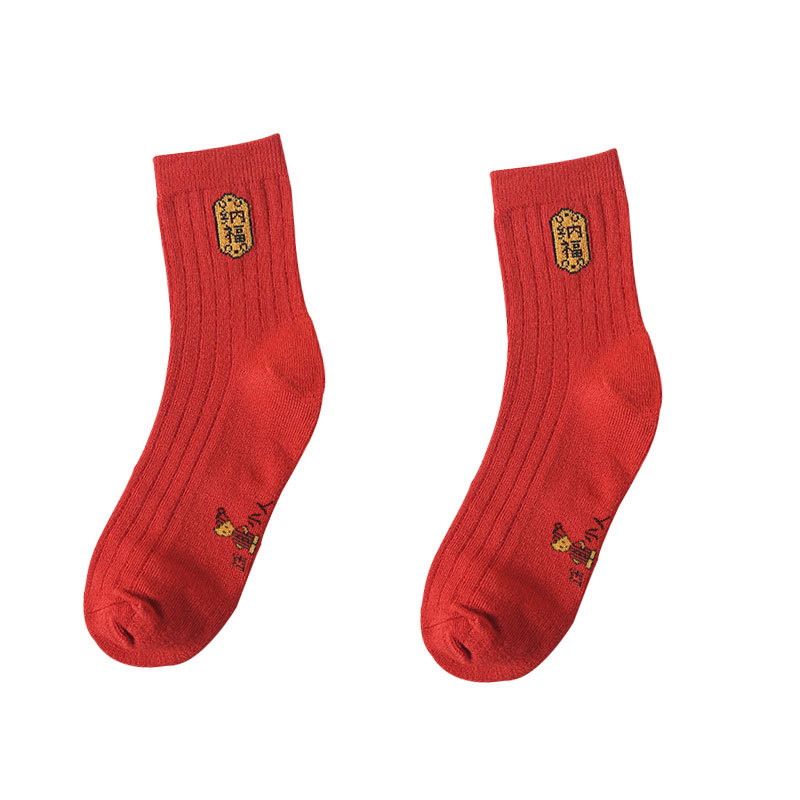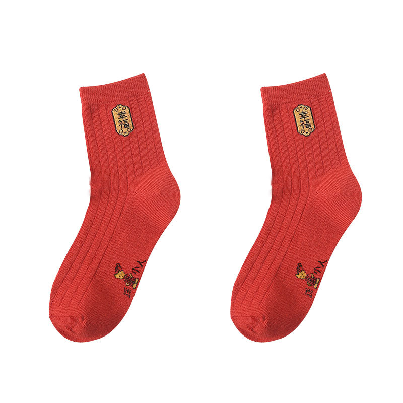 [Factory Outlet] New Year Red Socks for Men and Women This Year of Life Step on Little People Red Socks in the Tube Deodorant Socks Year of the Snake Socks스토어 가기
