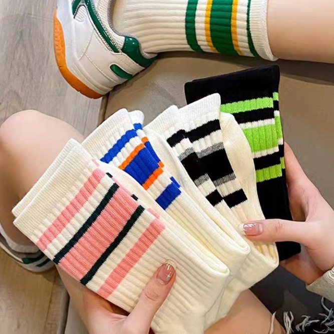 화이트 트렌디 한 봄과 가을 양말 여성 중간 길이 양말 일본 스타일 유행 스타킹 포장 스타킹 스트라이프 컬러 블록 새로운 스타일 주지 양말스토어 가기