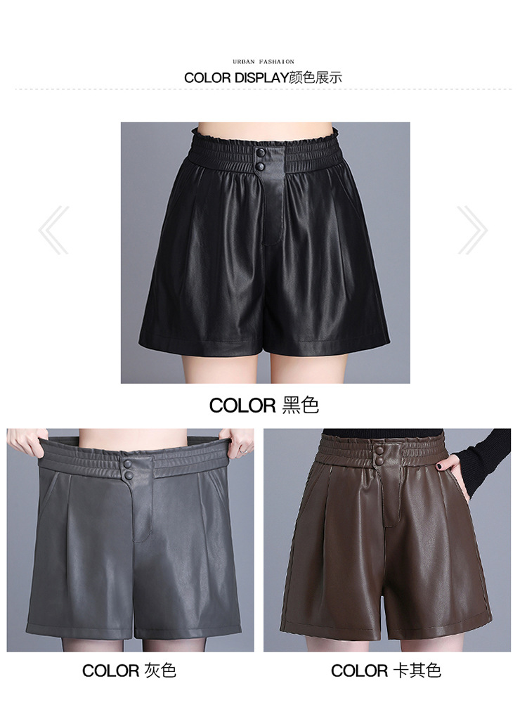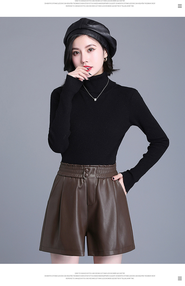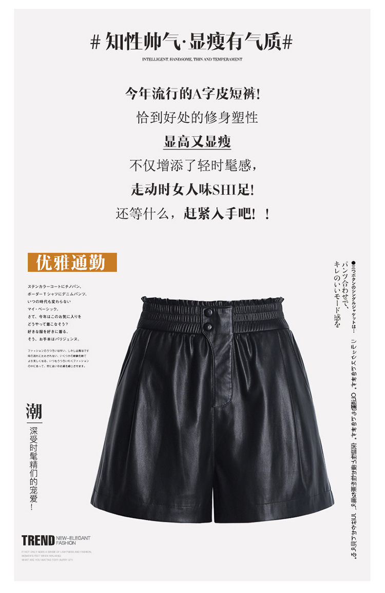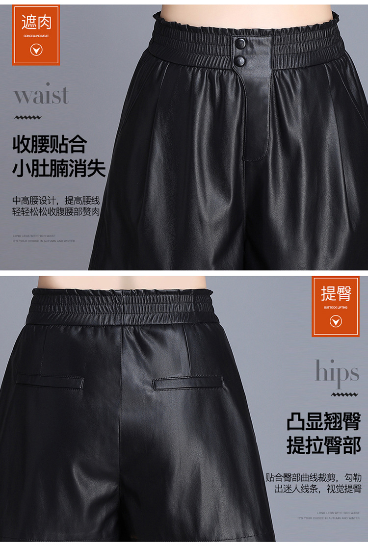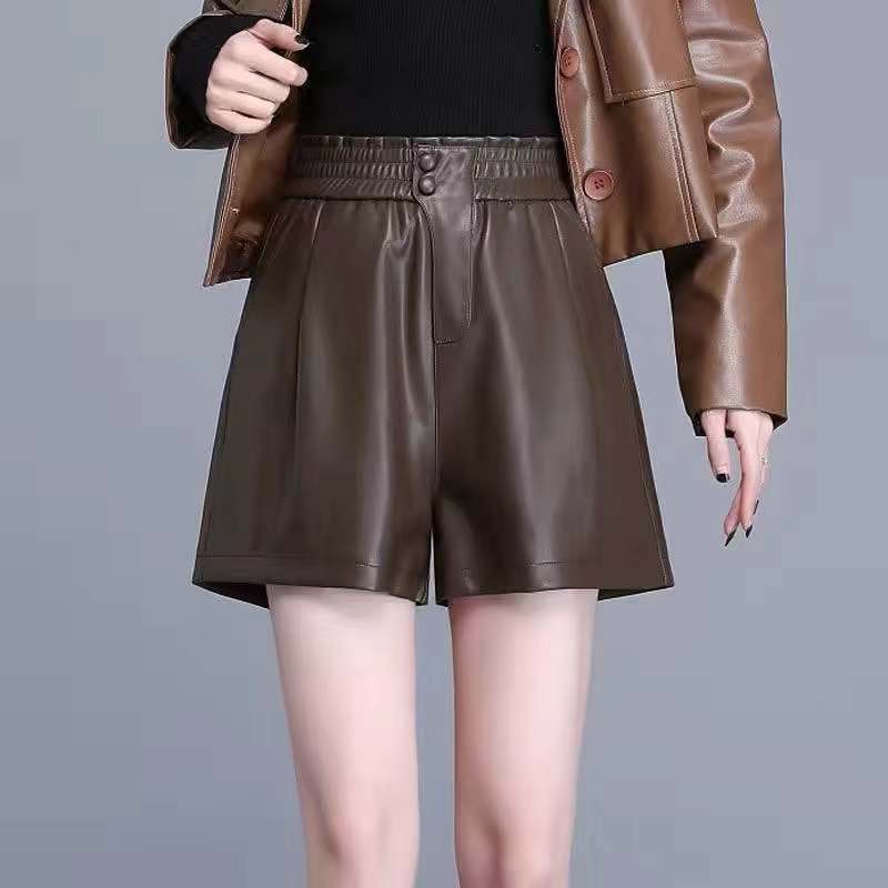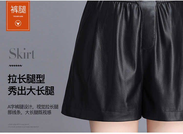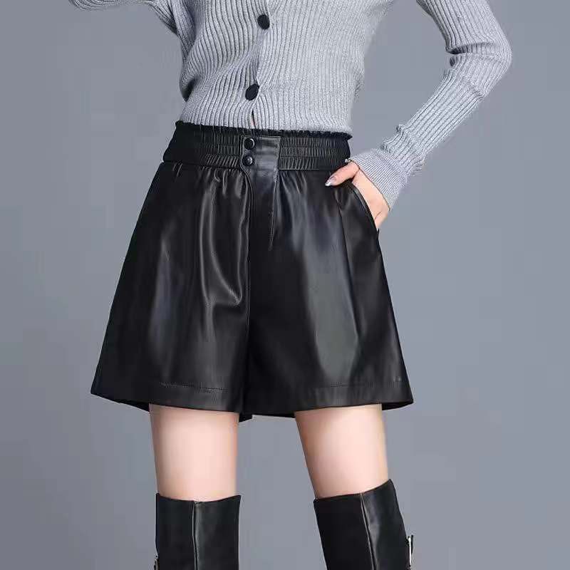 2025 봄, 가을, 겨울 해닝 천연 가죽 바지 여성용 하이웨이스트 양가죽 반바지 와이드 레그 대형 사이즈 A라인 바지 하이웨이스트 슬림핏스토어 가기