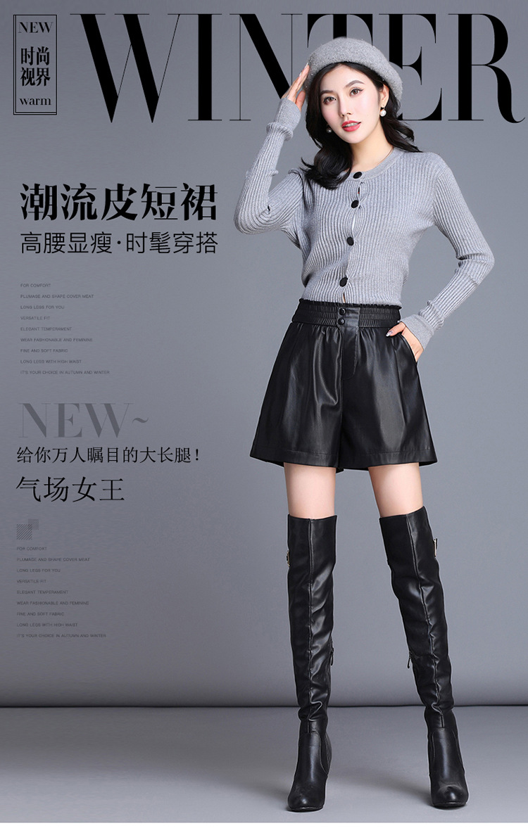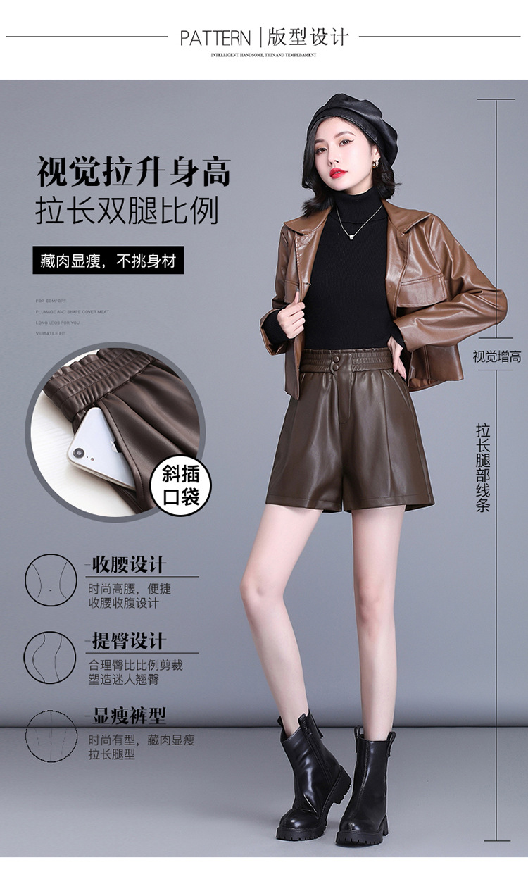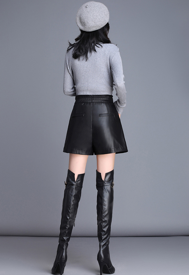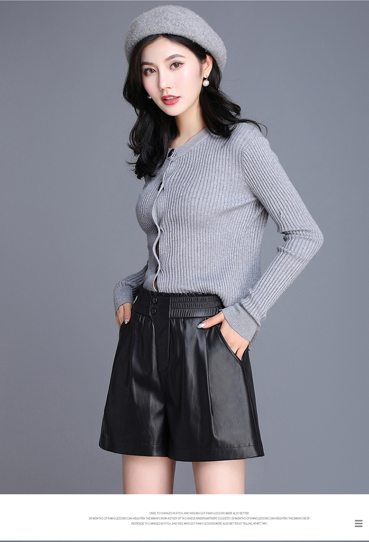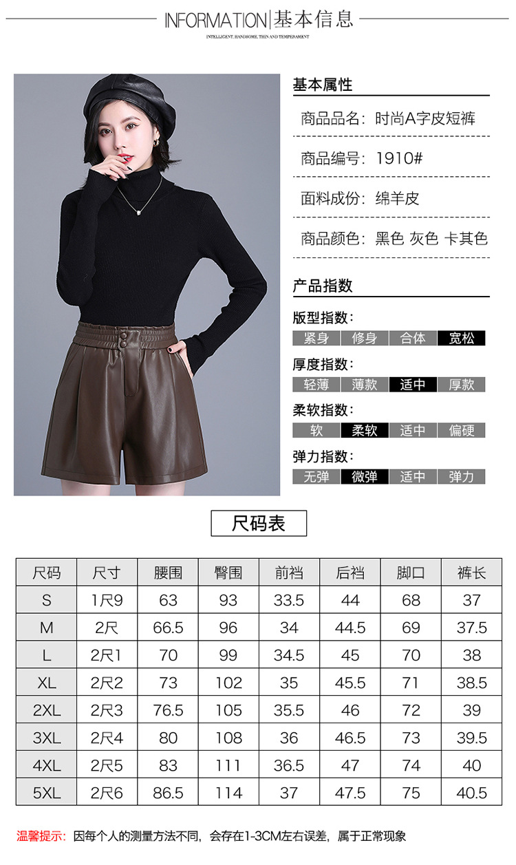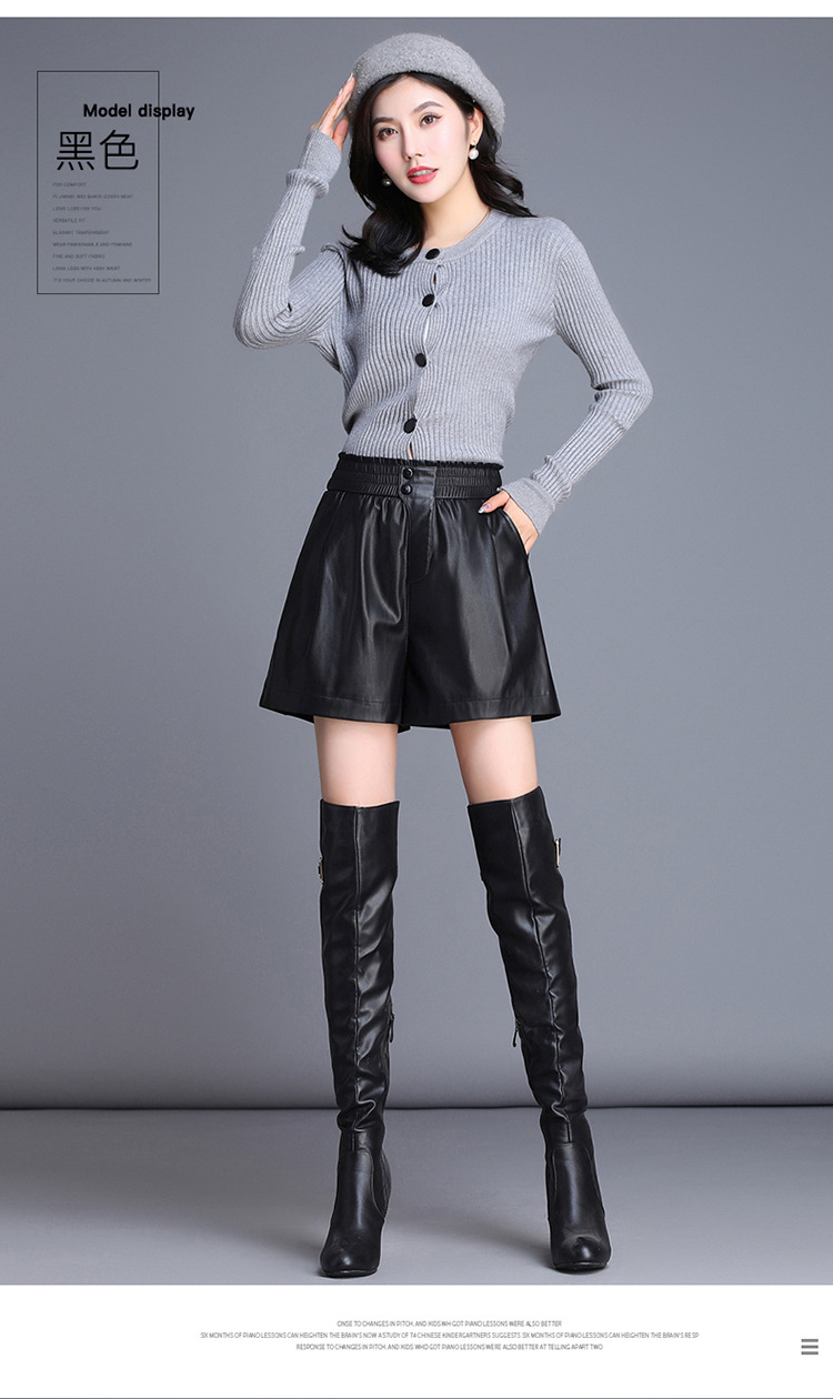 2025 봄, 가을, 겨울 해닝 천연 가죽 바지 여성용 하이웨이스트 양가죽 반바지 와이드 레그 대형 사이즈 A라인 바지 하이웨이스트 슬림핏스토어 가기