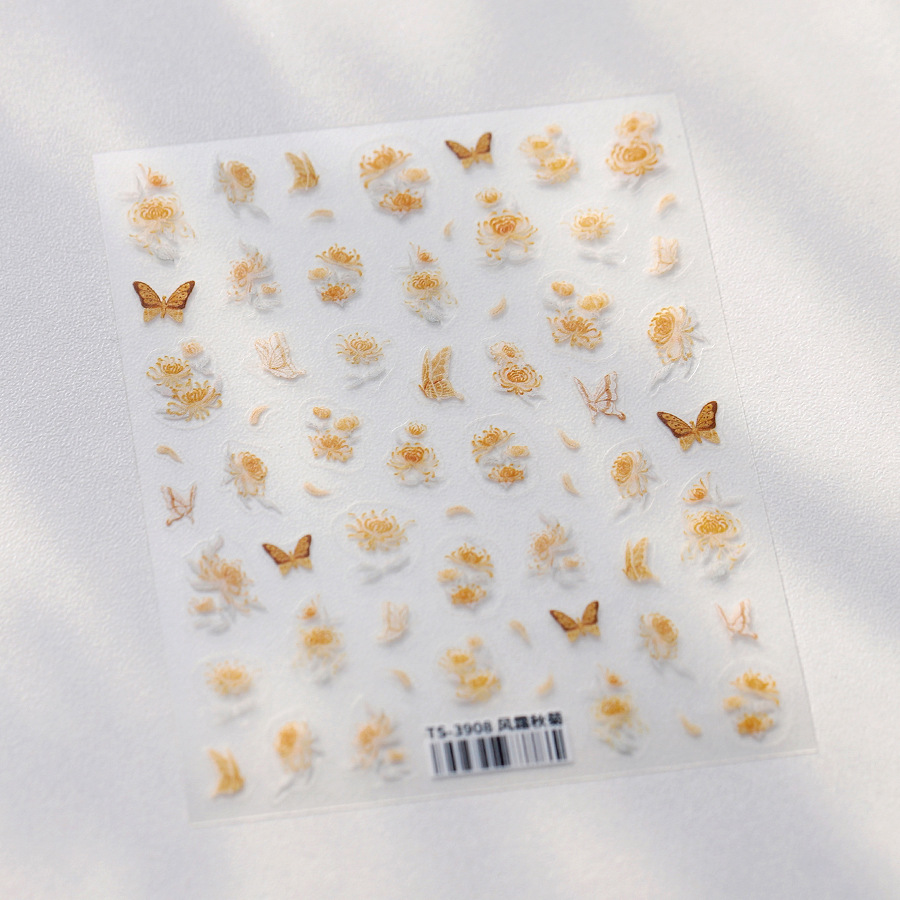 철 스크럽 신기술 얇은 힘든 네일 스티커 프로 꽃 접착 네일 아트 스티커 TS-3905 계피 향수스토어 가기