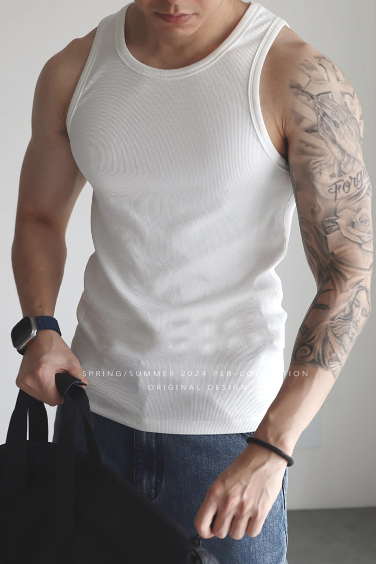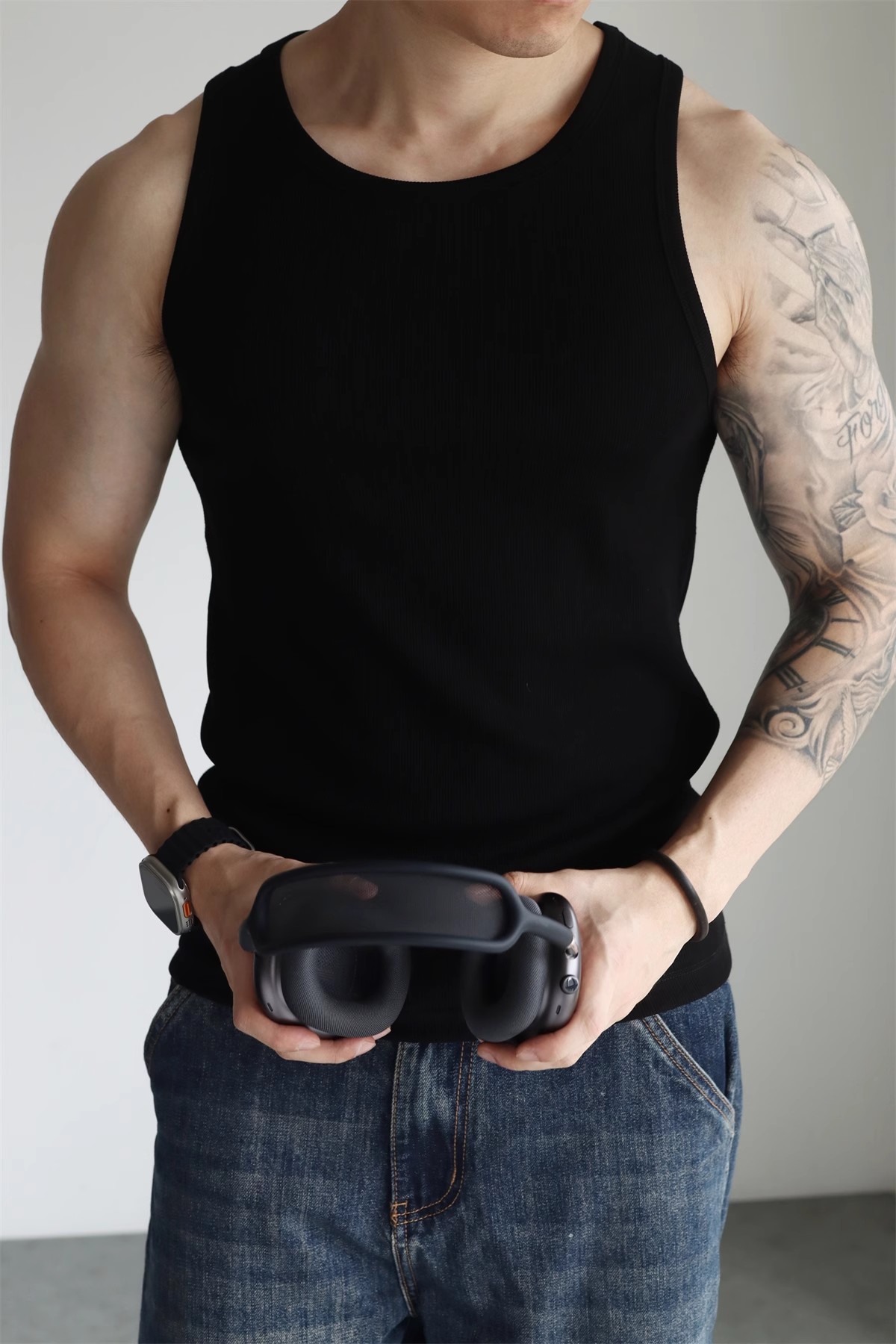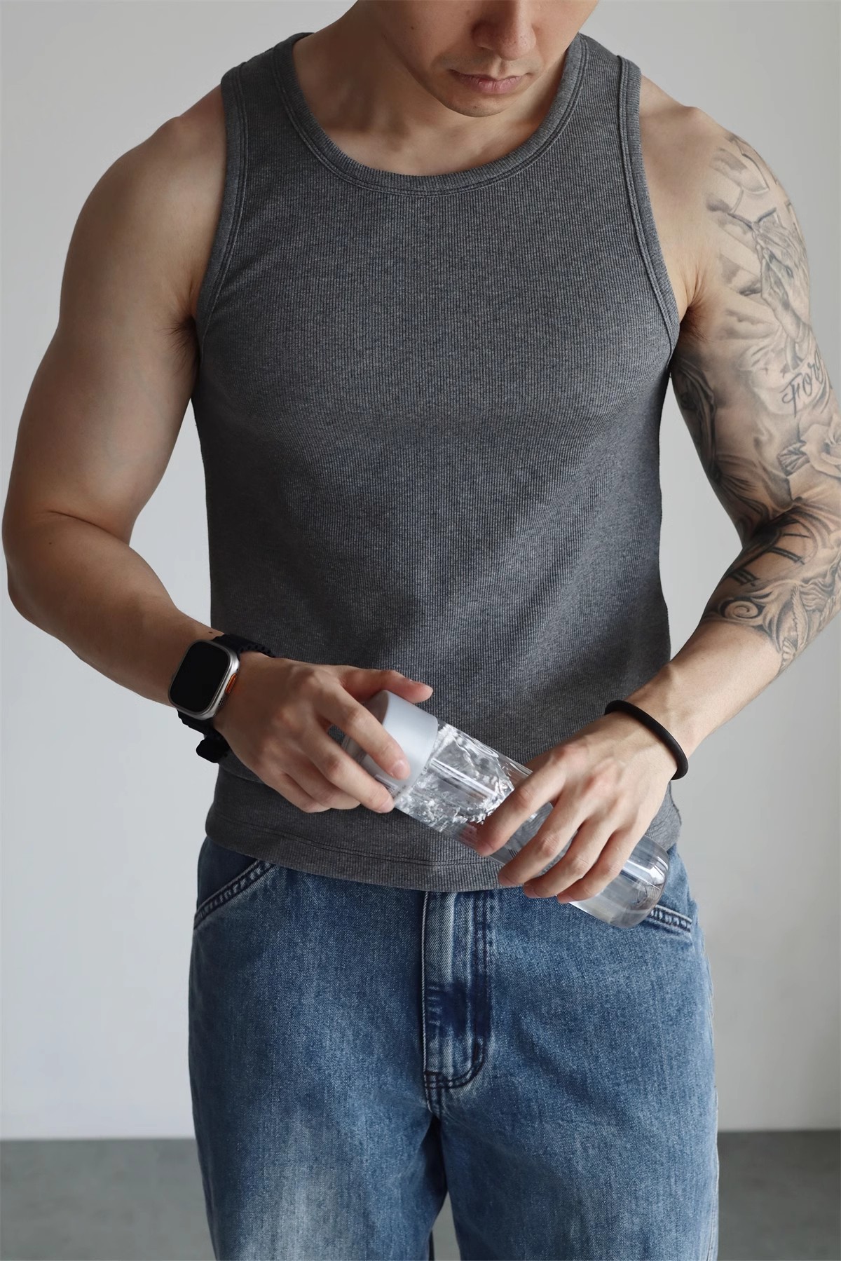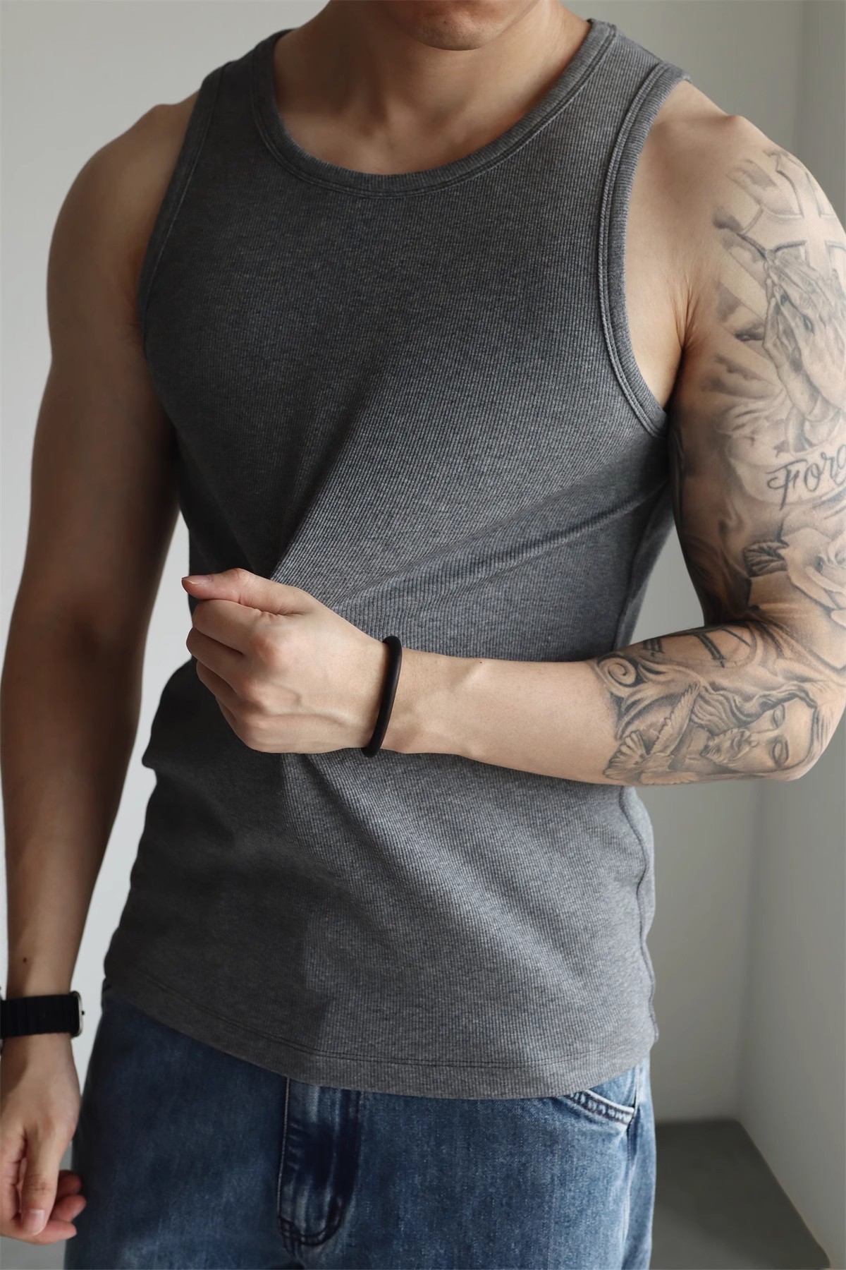 아메리칸 스타일 Ami Khaji Combed Cotton Threaded Tooling Vest 남성용 타이트한 탄성 민소매 티셔츠 Threaded Base Waistcoat스토어 가기