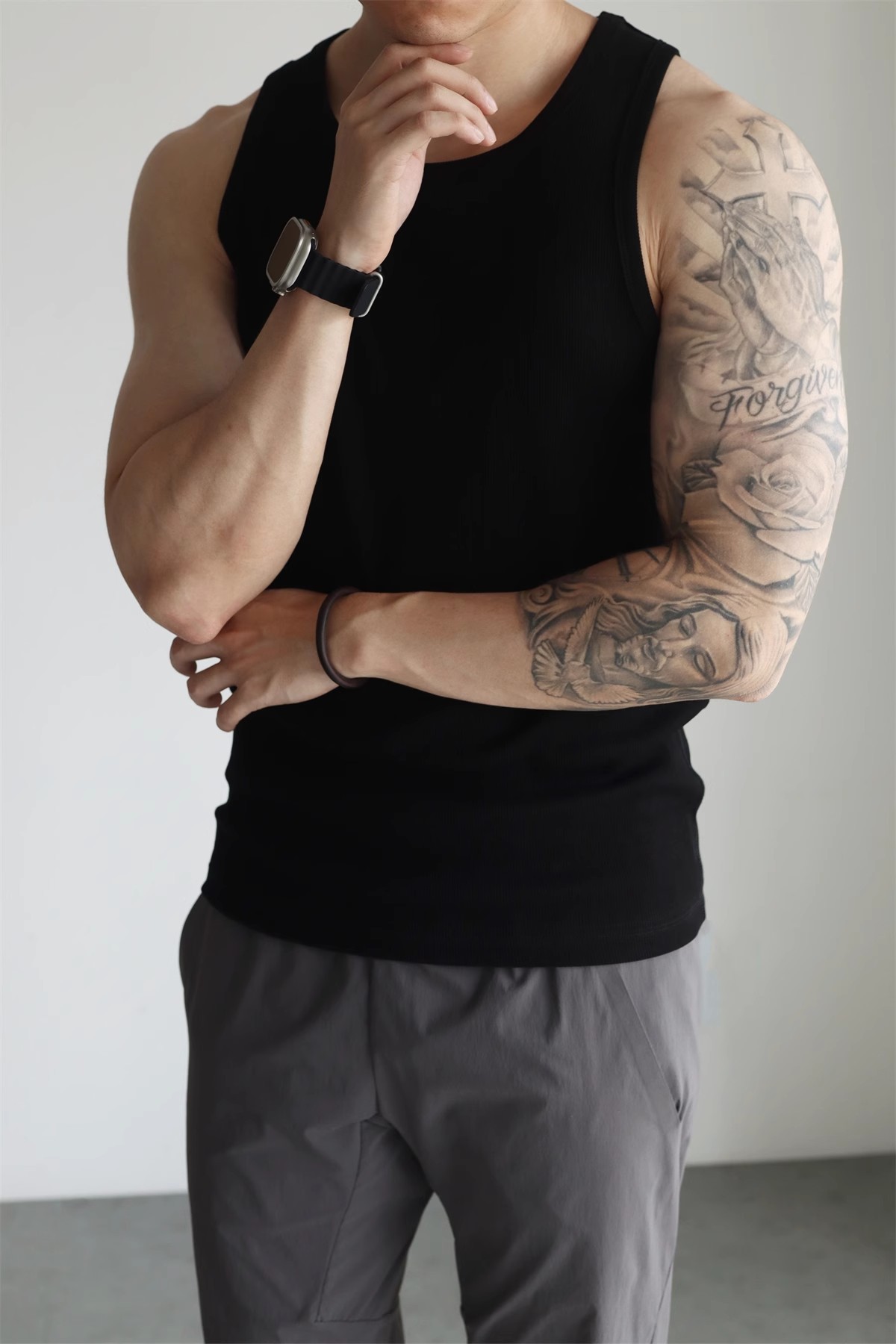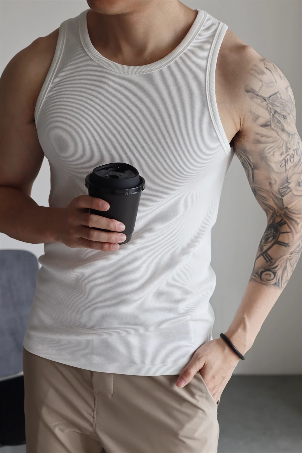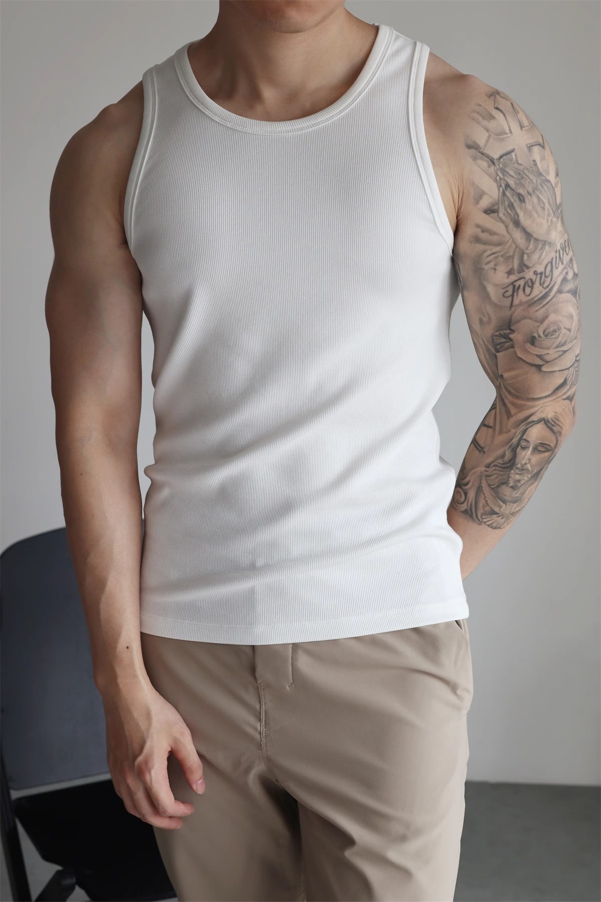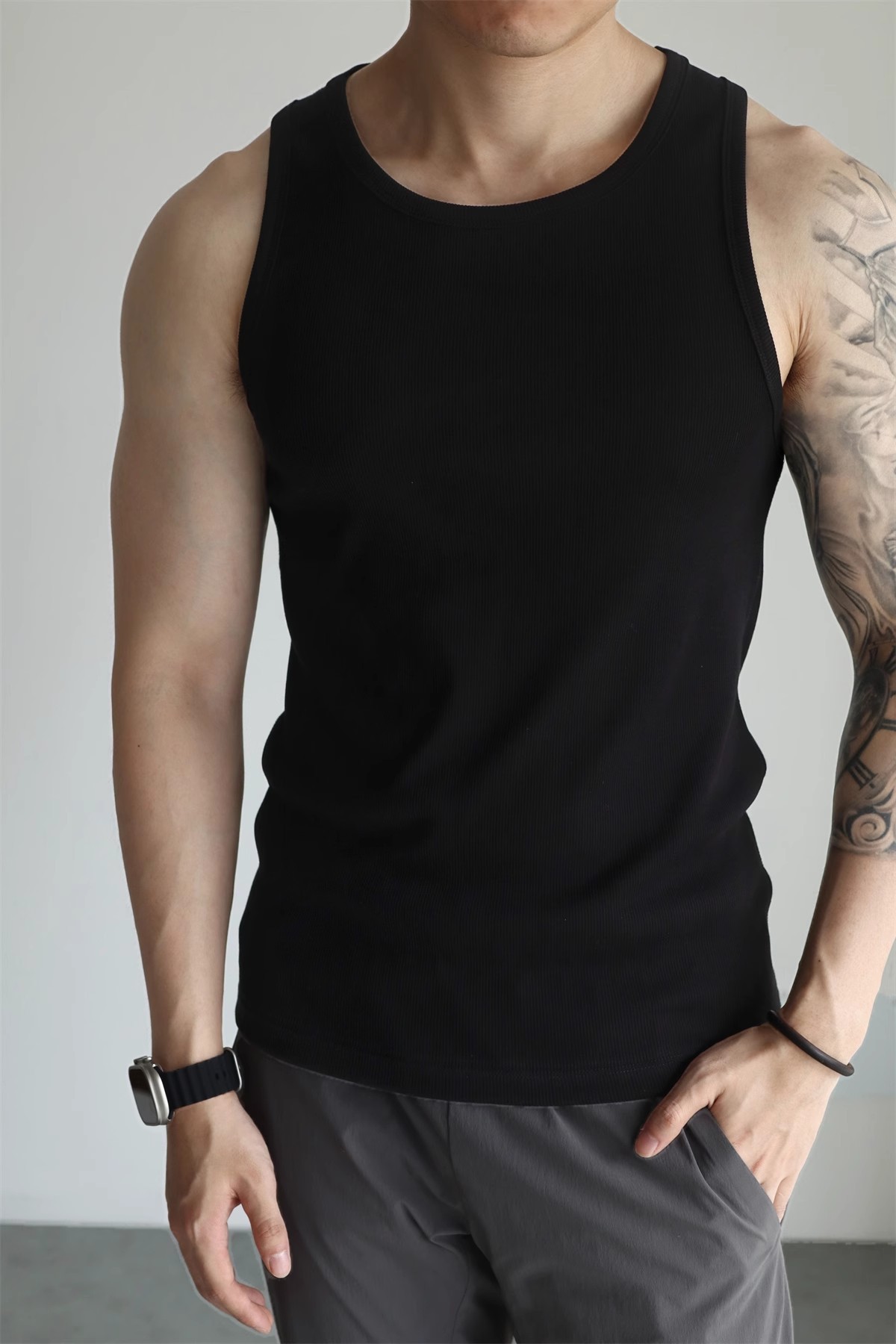 아메리칸 스타일 Ami Khaji Combed Cotton Threaded Tooling Vest 남성용 타이트한 탄성 민소매 티셔츠 Threaded Base Waistcoat스토어 가기