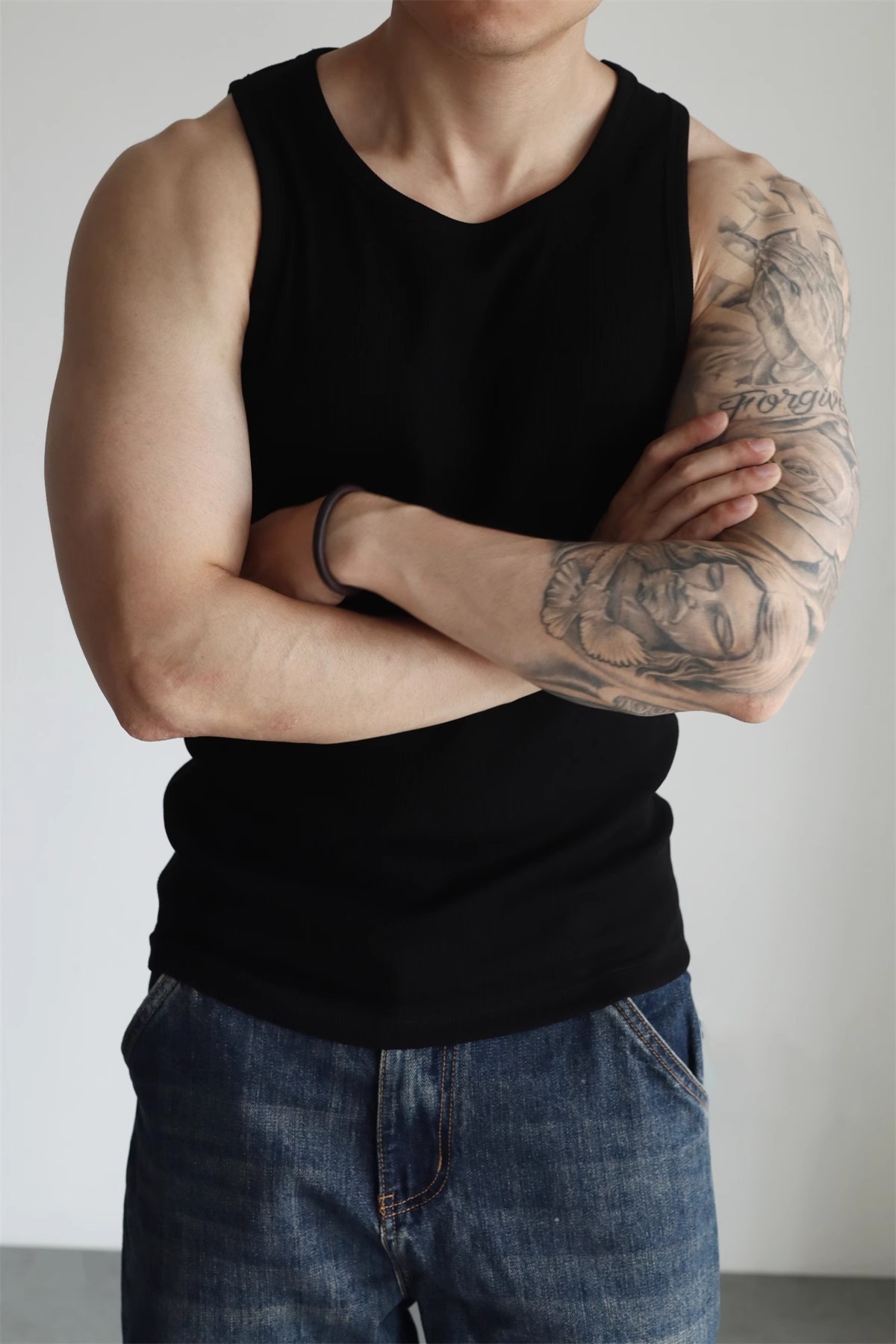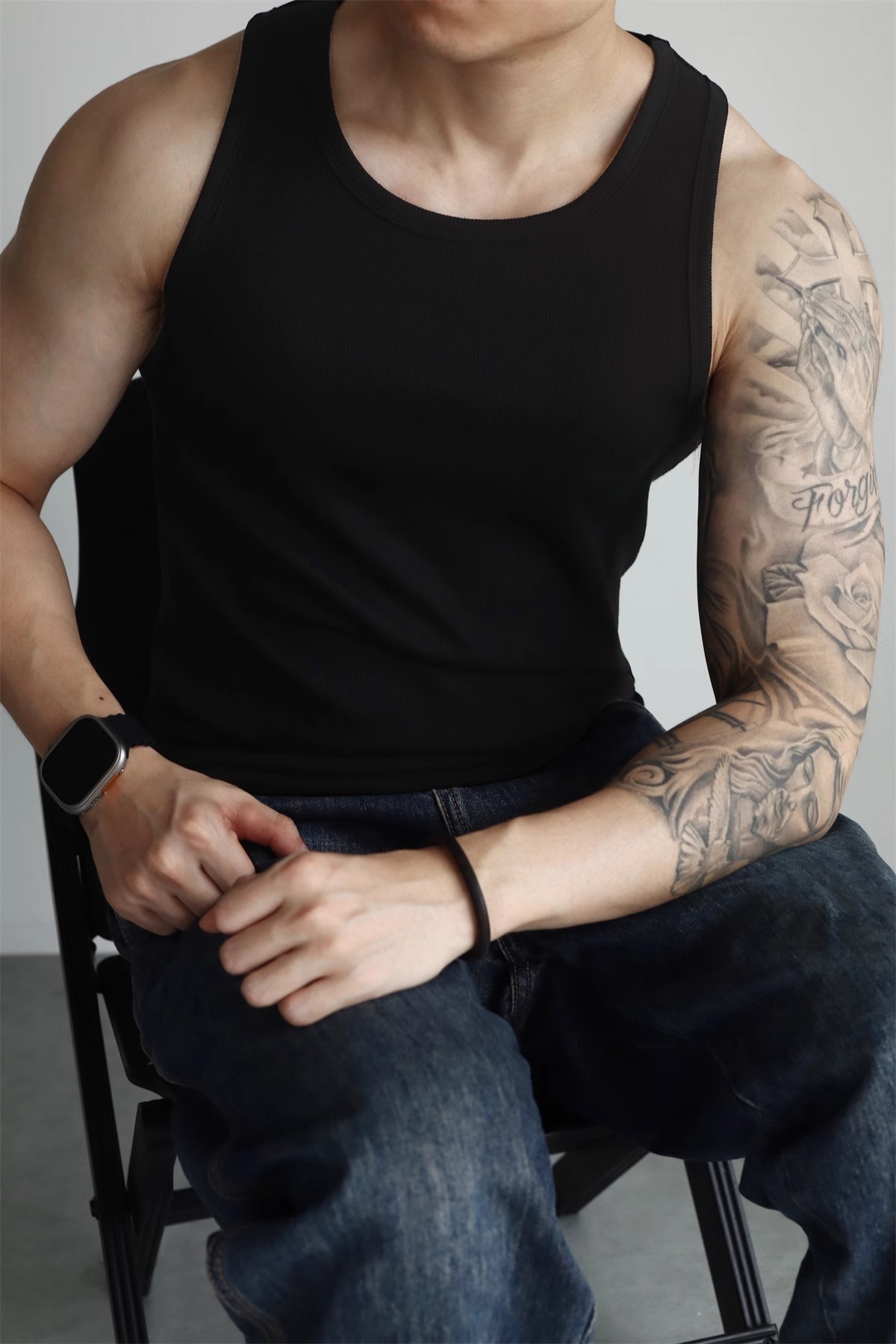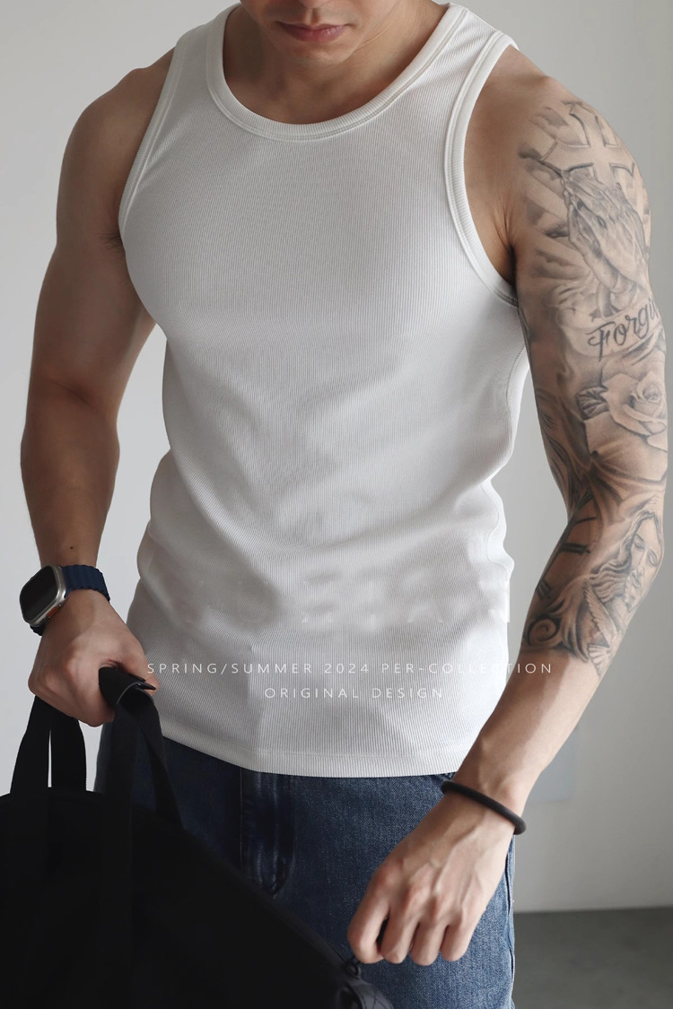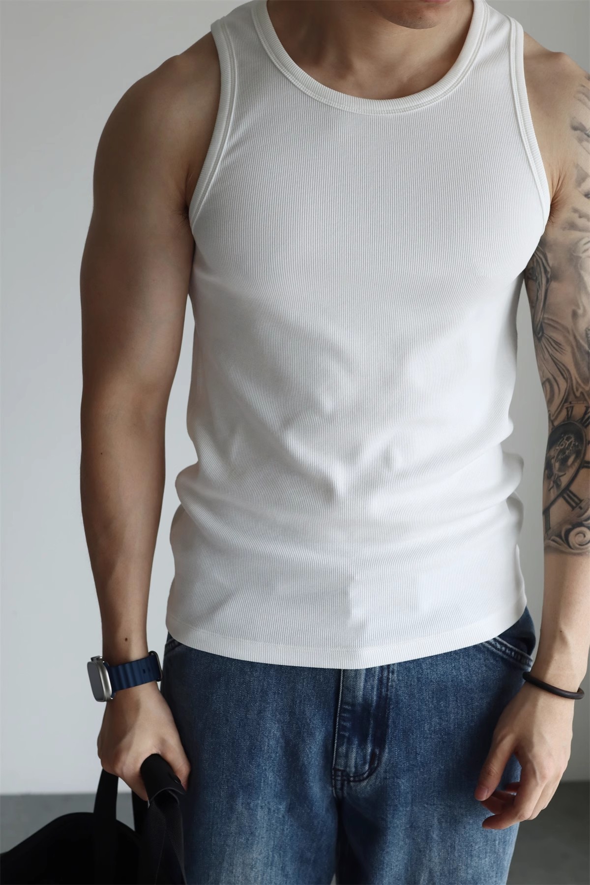 아메리칸 스타일 Ami Khaji Combed Cotton Threaded Tooling Vest 남성용 타이트한 탄성 민소매 티셔츠 Threaded Base Waistcoat