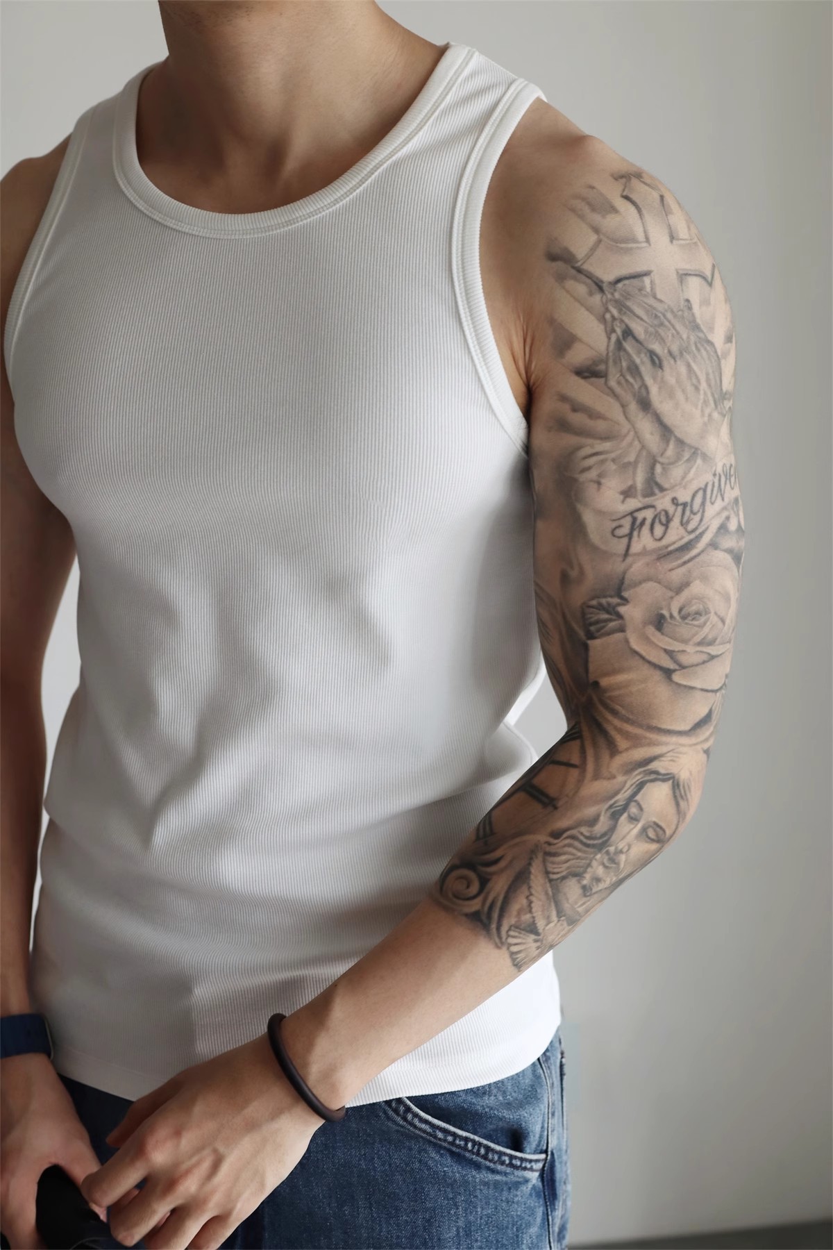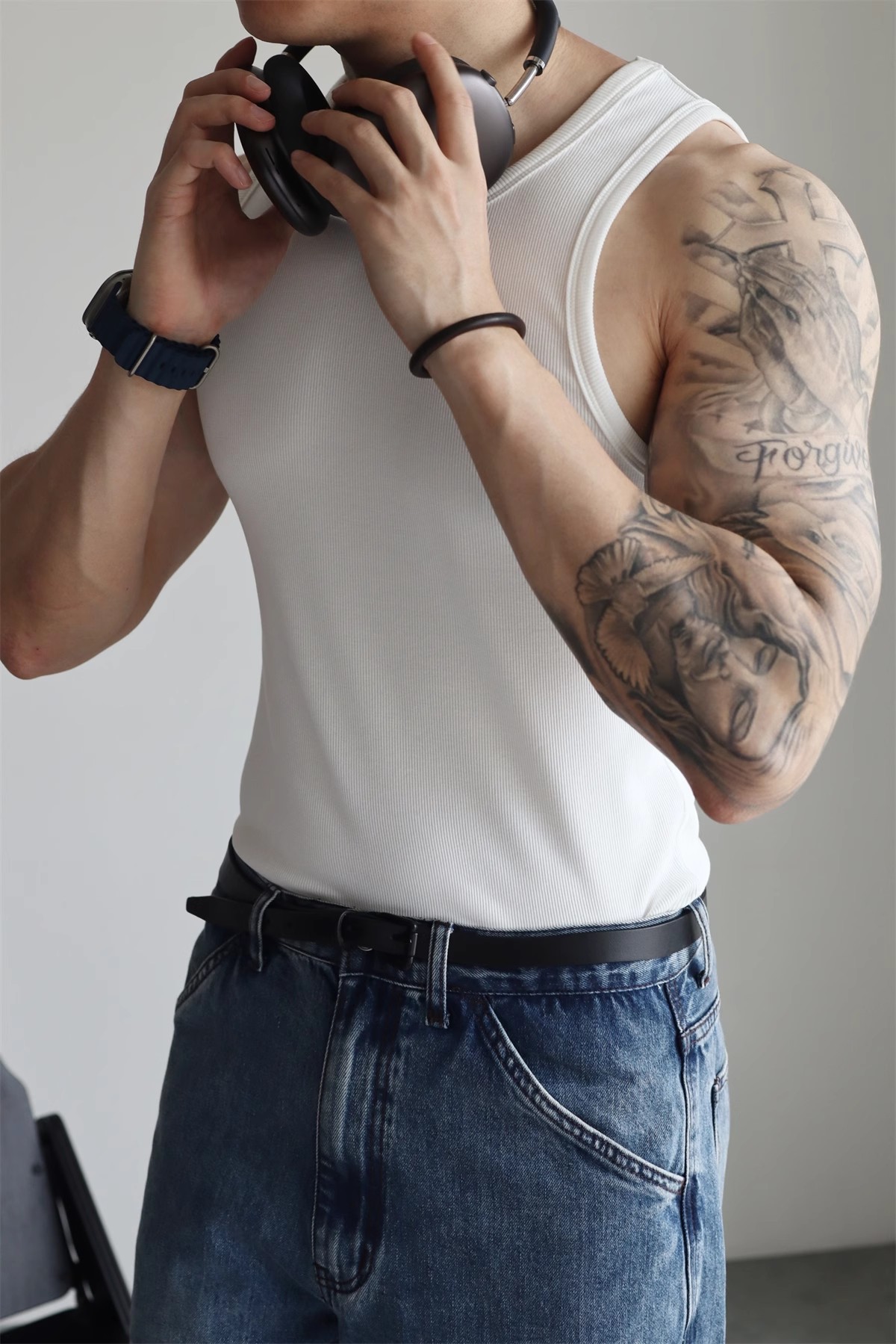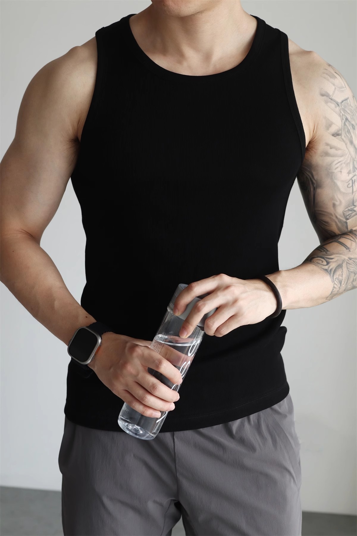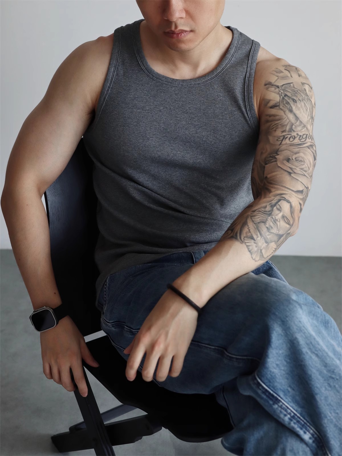 아메리칸 스타일 Ami Khaji Combed Cotton Threaded Tooling Vest 남성용 타이트한 탄성 민소매 티셔츠 Threaded Base Waistcoat