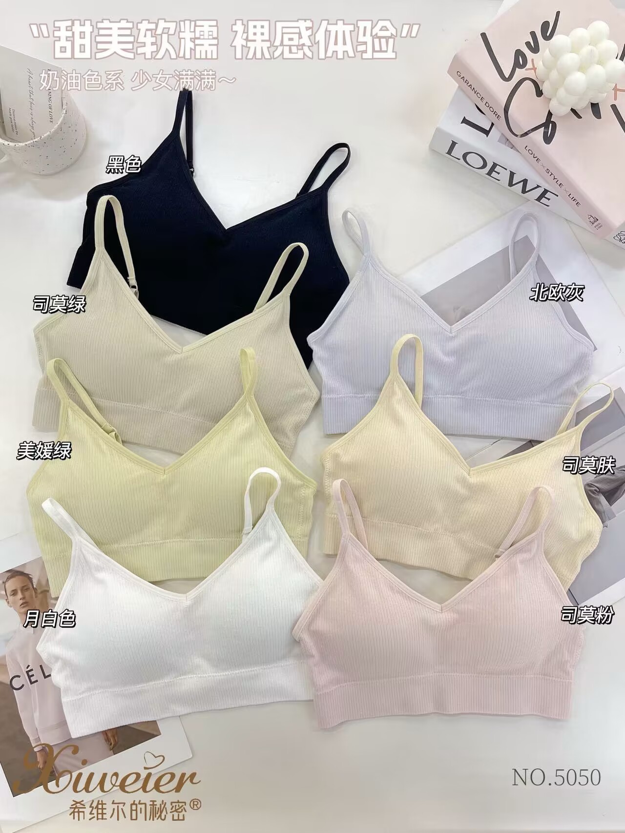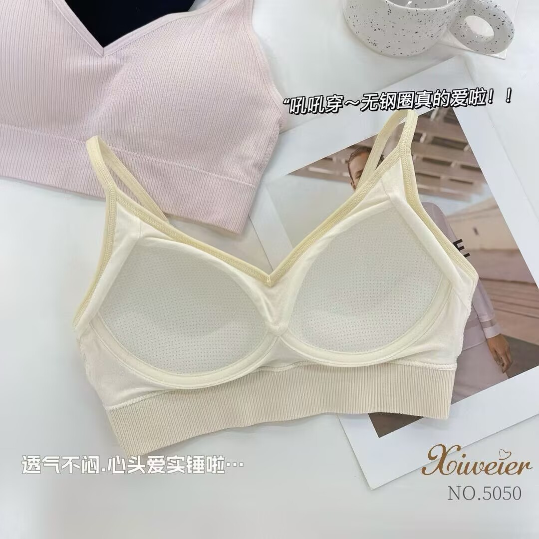 원활한 아름다운 등 삼각형 컵 통합 고정 얇은 어깨 스트랩 스틸 링없이 작은 가슴 모임 스트랩리스 작은 슬링 속옷 5050