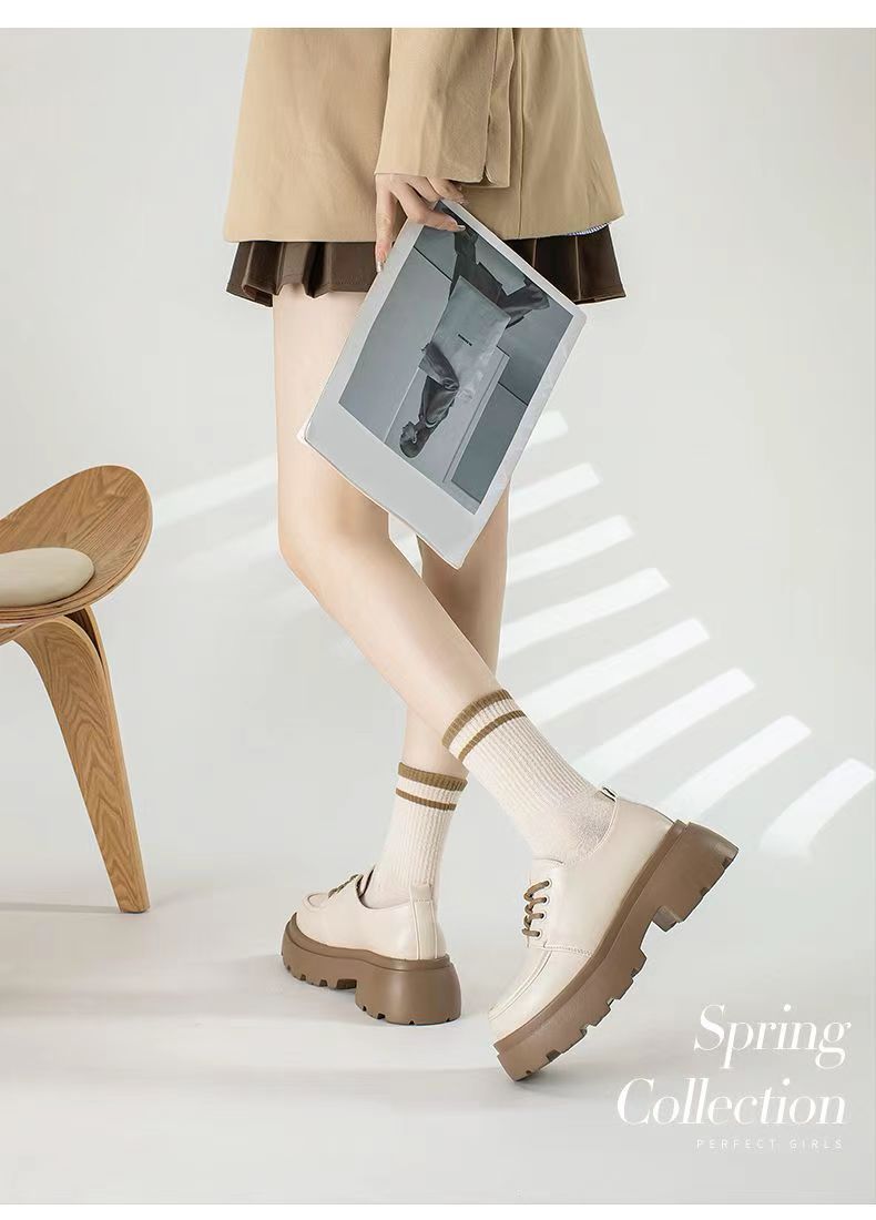 두꺼운 밑창 편안한 짧은 부츠 영국 스타일의 패션 로퍼 2024 가을과 겨울 새로운 기모 가죽 부츠 학생 신발스토어 가기