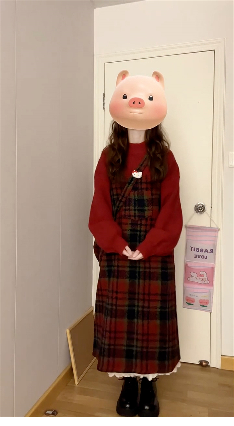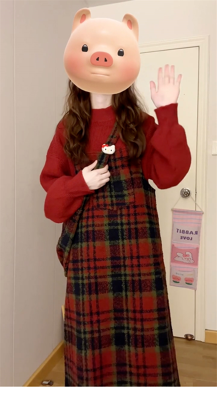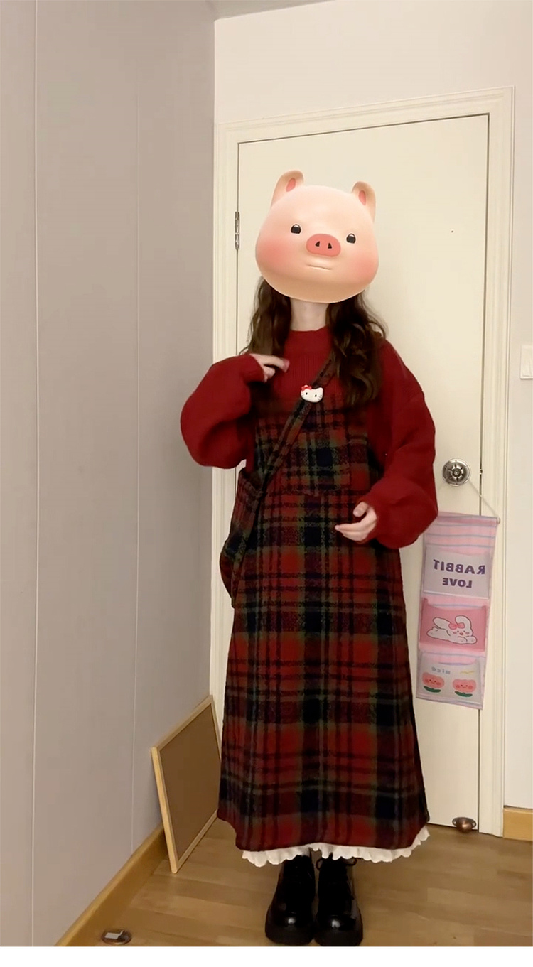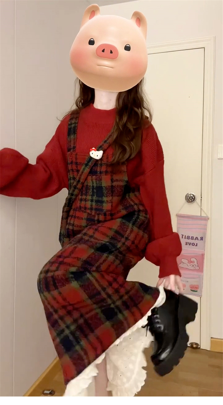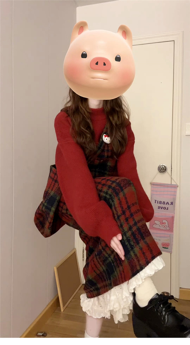 • 스웨터 + 서스펜더 스커트 [세트] 작은 가을 겨울 의상/여성을 위한 롱 스커트/스커트 가을 겨울/여성을 위한 가을 겨울/여성을 위한 가을 겨울/베이스 드레스/올해 인기 스커트/
