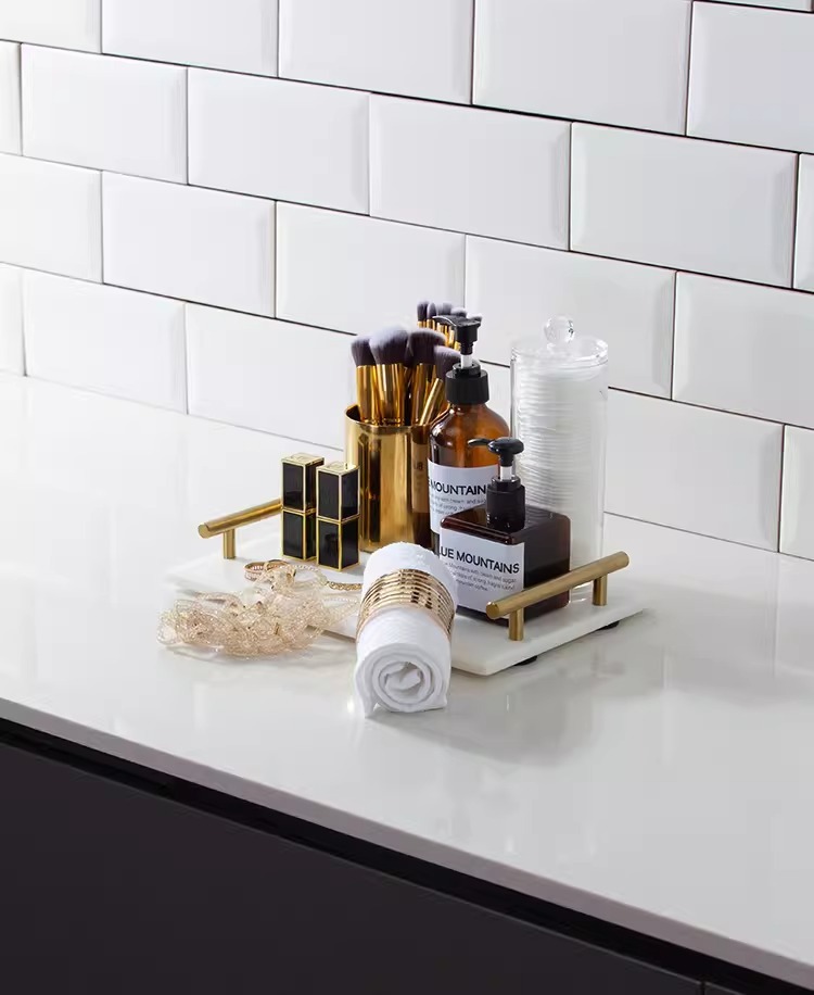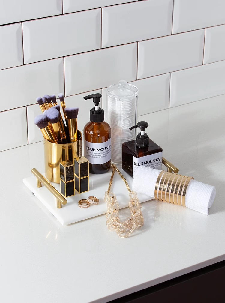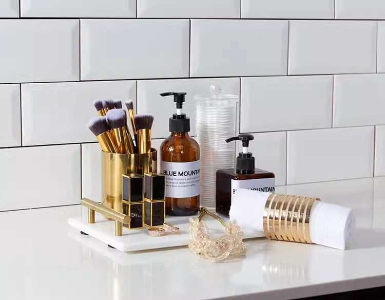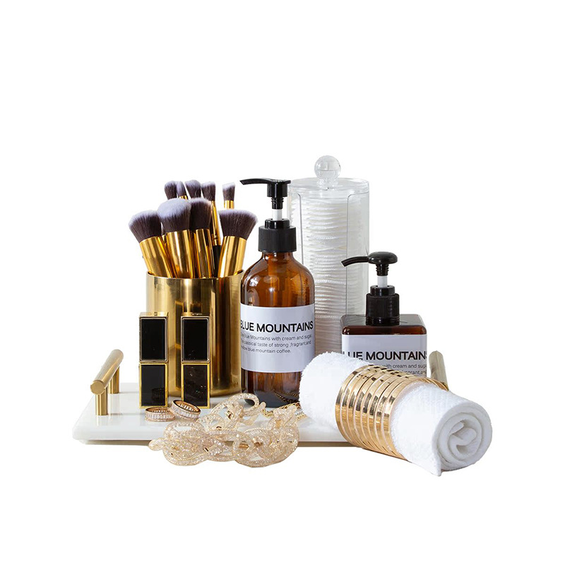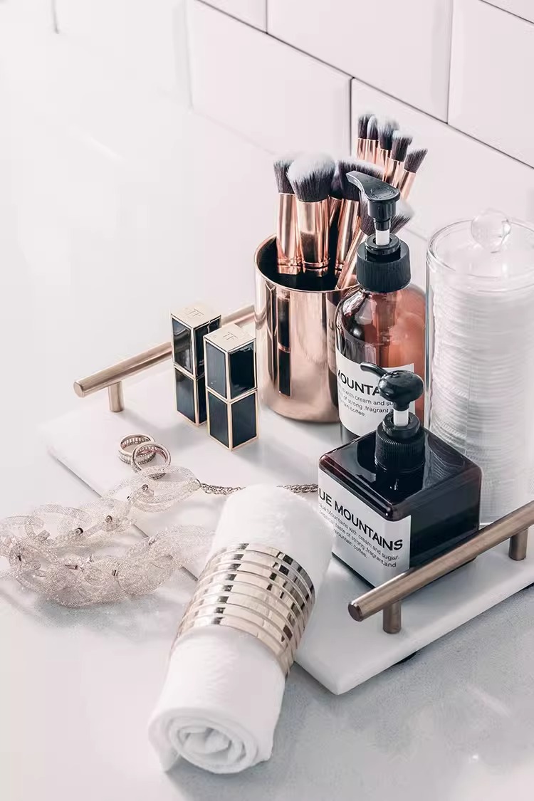 모델 룸 욕실 옷감 장식품 대리석 트레이 로션 병 메이크업 연필 립스틱 쥬얼리 메이크업 코튼스토어 가기