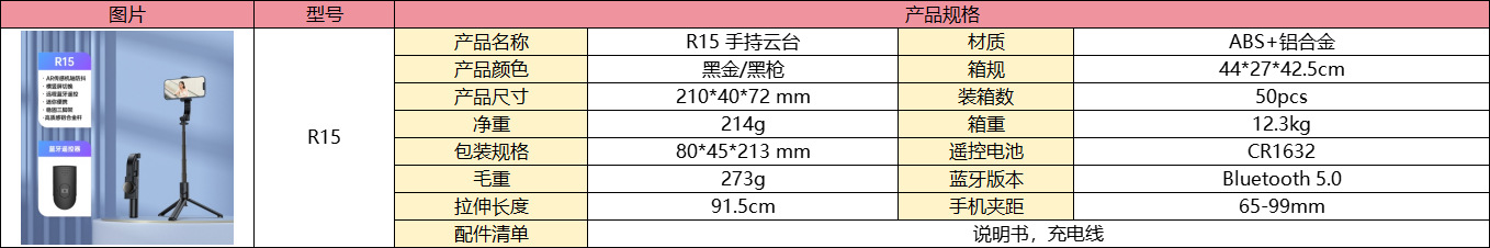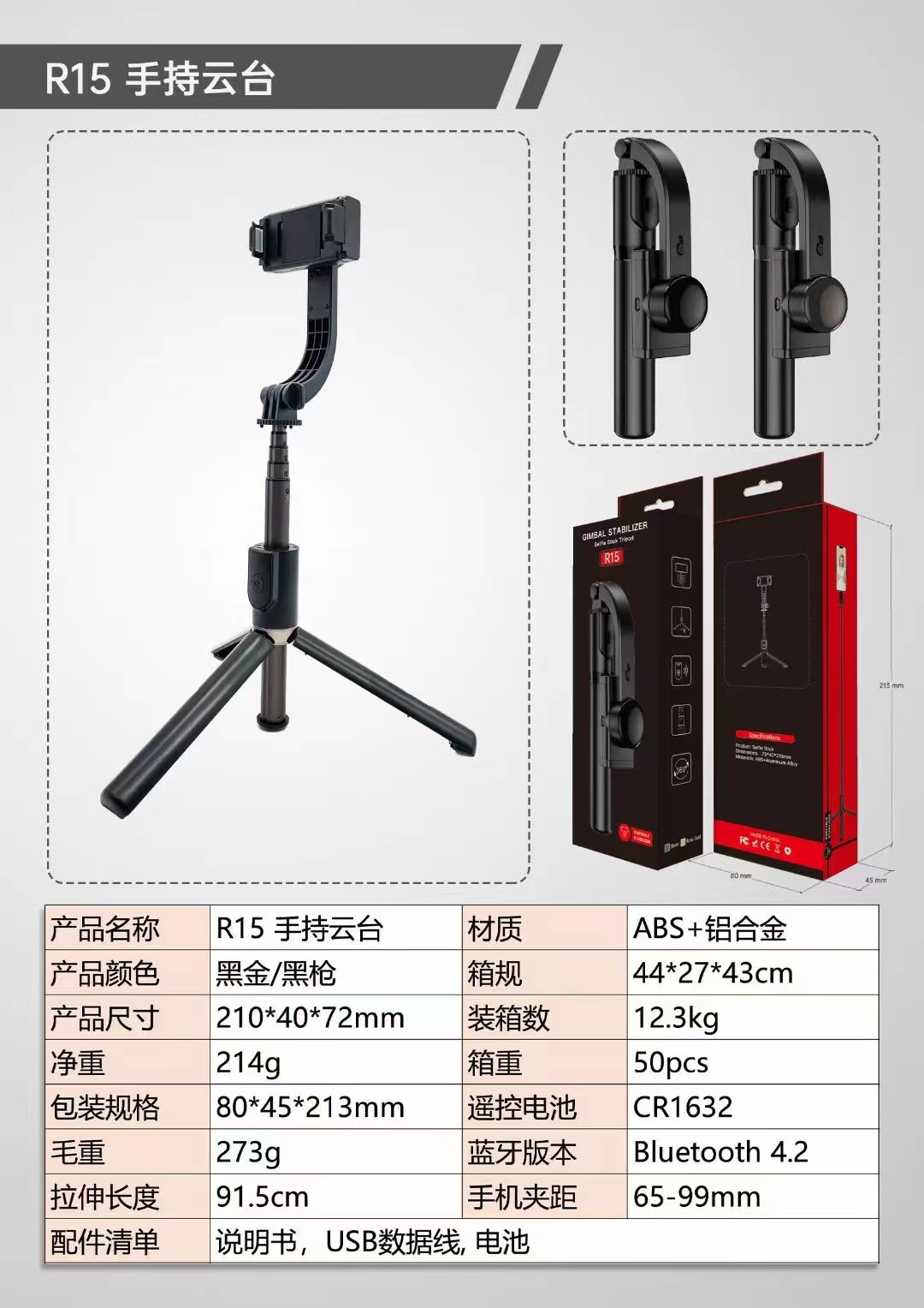 진청 국경 R15 휴대 전화 흔들림 안정제 셀카 스틱 휴대용 짐벌 안정기 라이브 삼각대 재고스토어 가기
