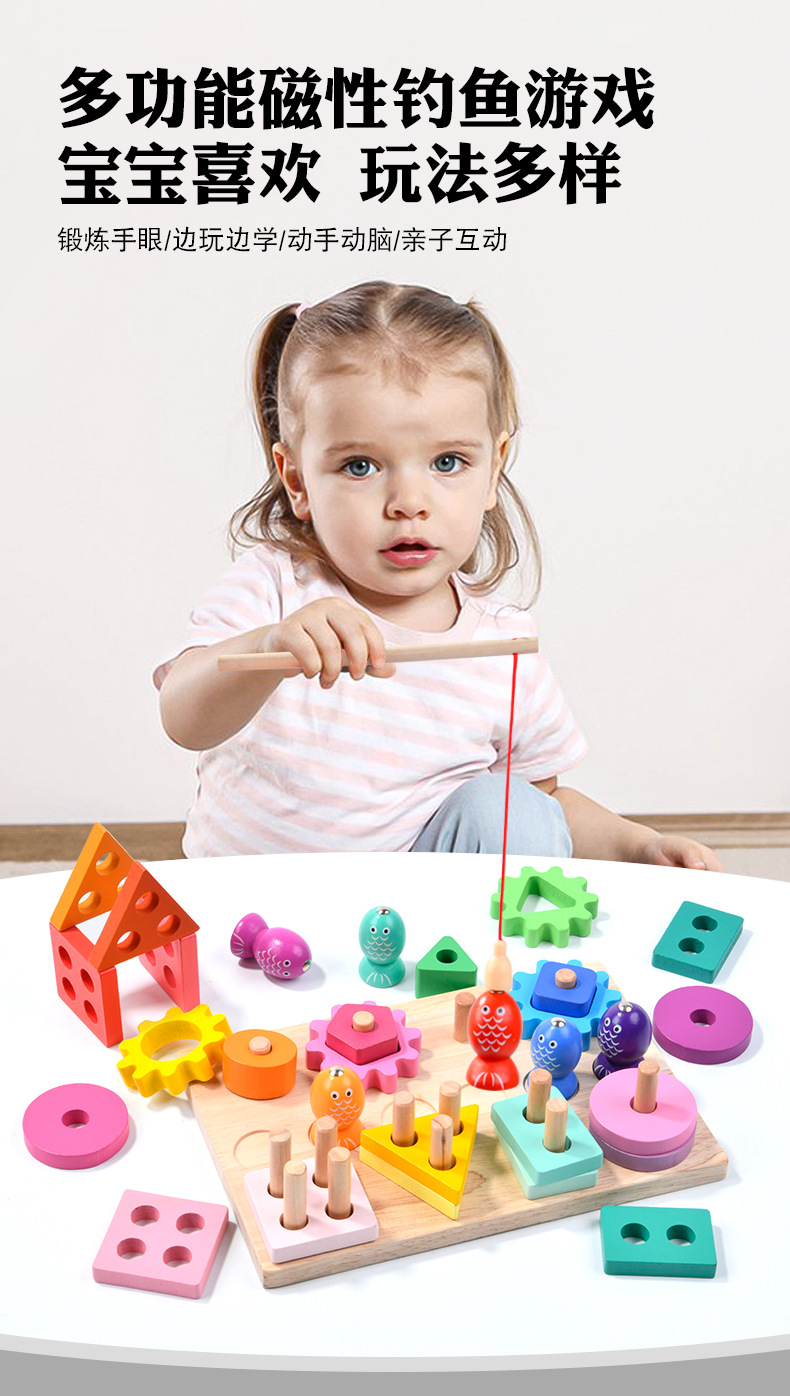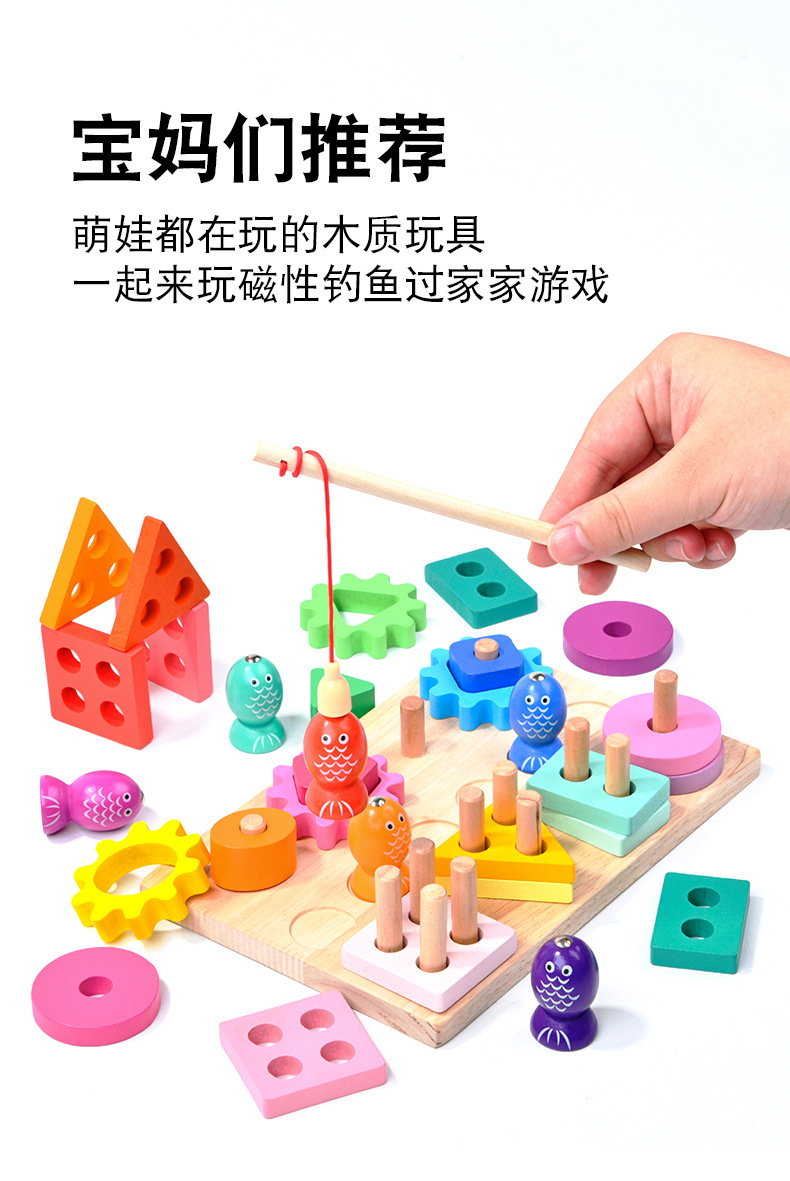 국경 간 나무 기하학적 매칭 보드 어린이 교육 조기 교육 손 눈 조정 기어 낚시 세트 기둥 장난감스토어 가기
