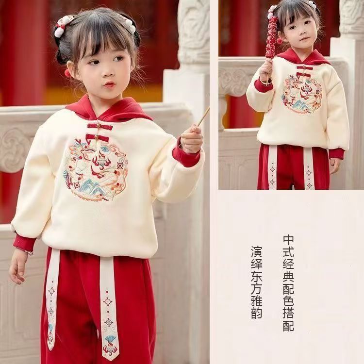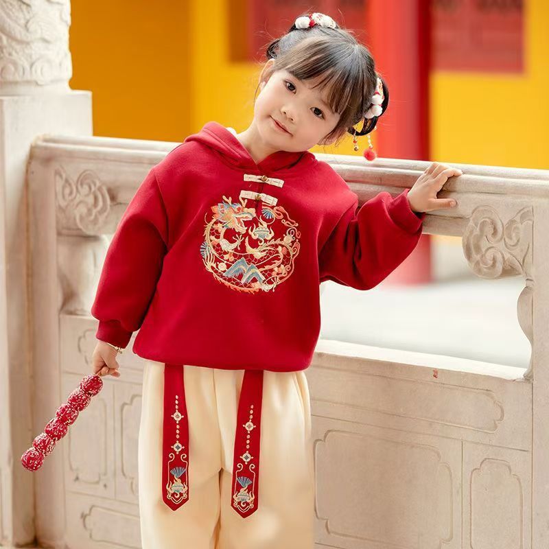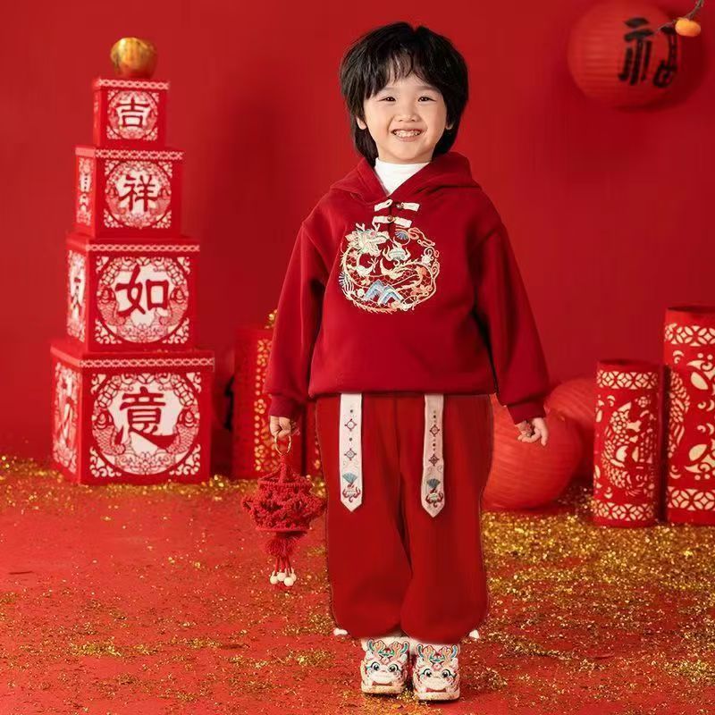 새 소년과 소년의 새해 세트 용의 해 한푸 기모 어린이 두꺼운 탕 세트 축제 공연 투피스 세트