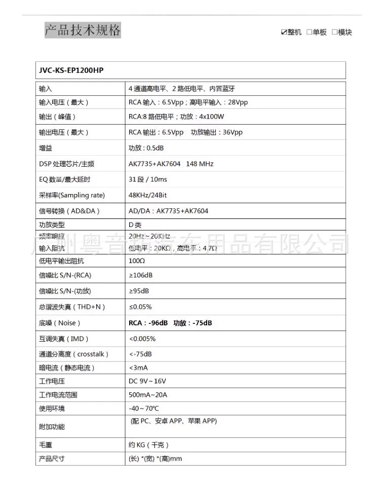 JVC 자동차 오디오 KS-EP1200HP 차 4-way dsp 전력 증폭기 오디오 프로세서 수정 업그레이드
