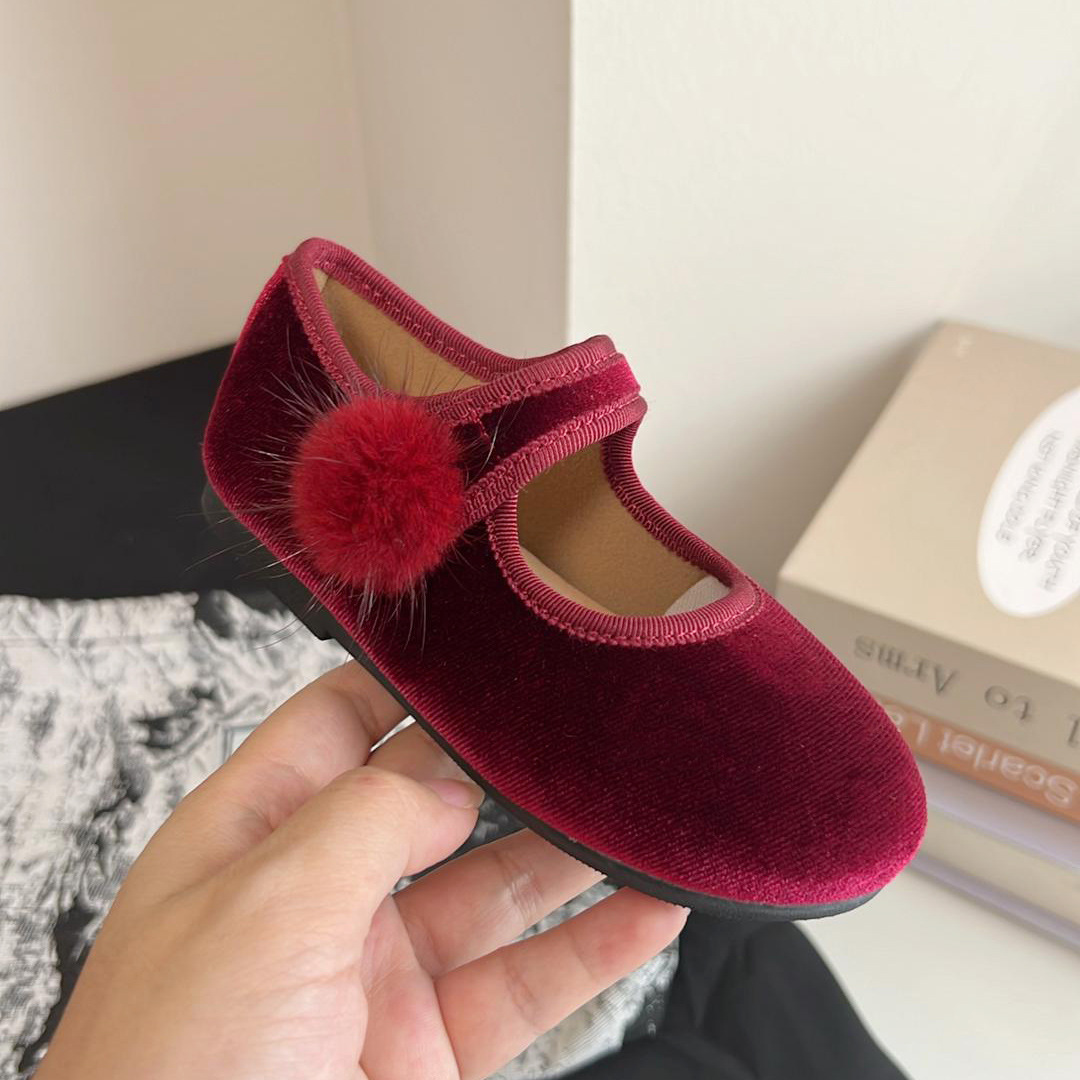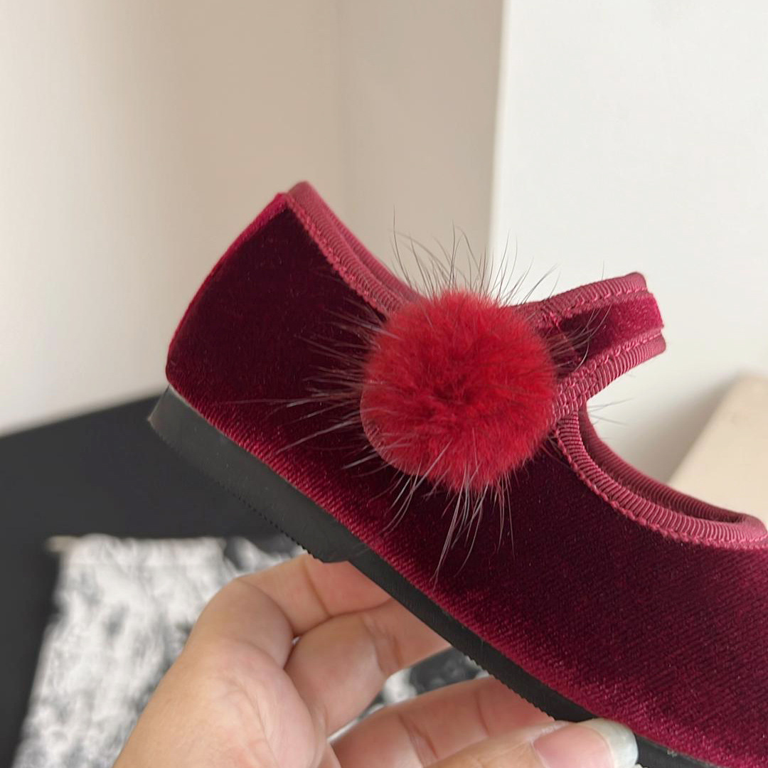 한국 어린이 신발 2024 여자 벨벳 새해 빨간 싱글 신발 틈새 소프트 단독 모피 공 공주 신발 올매치 가죽 신발 트렌디