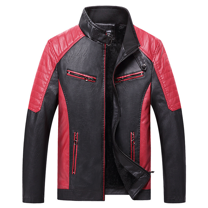 기모 두꺼운 아마존 남자 짧은 국경 컬러 블록 유럽과 미국의 가죽 자켓 오토바이 칼라 청소년 가죽 자켓